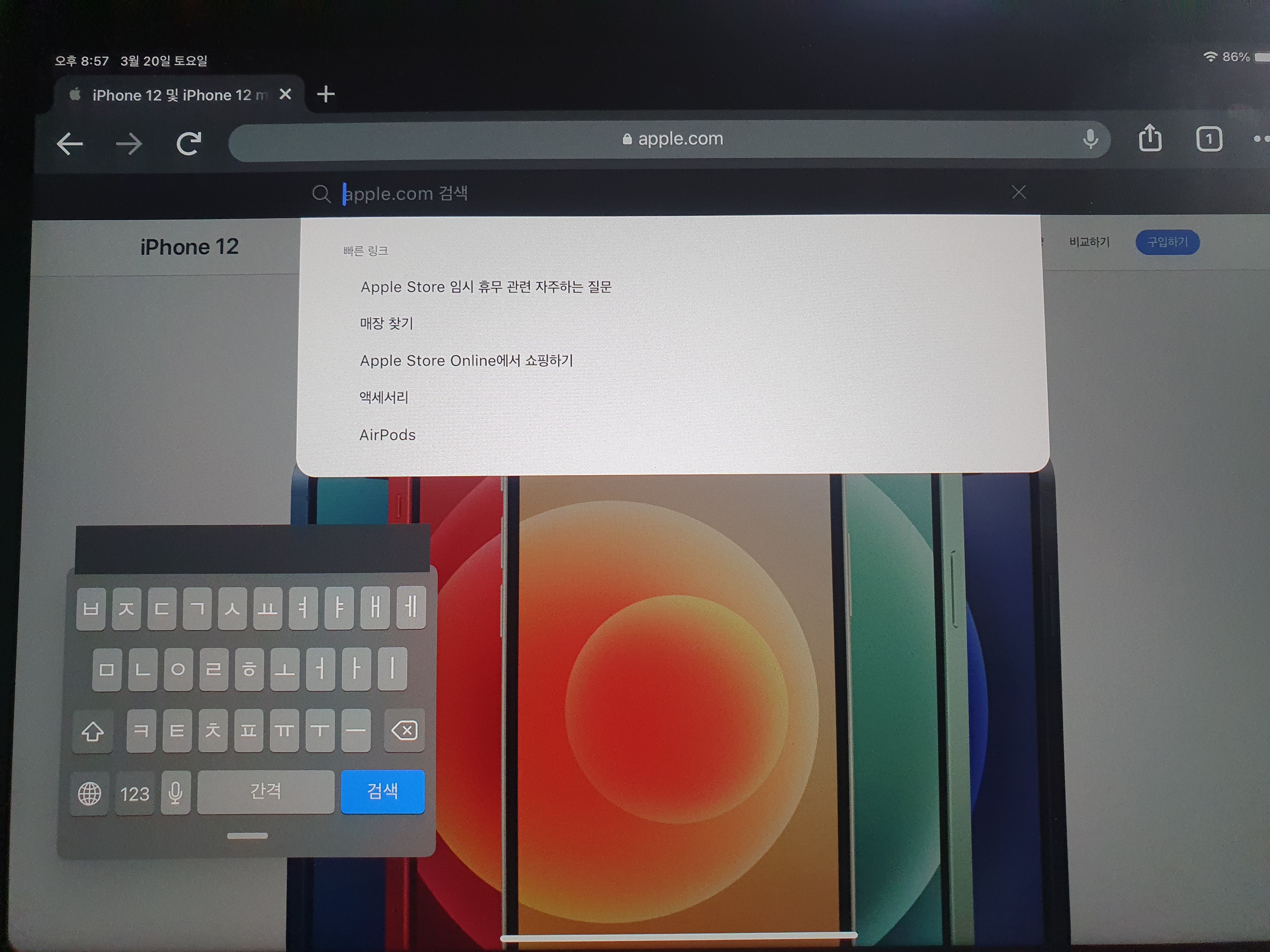 iPad 키보드 상단에 검은 띠가 보이는 현상으로 확인됩니다.