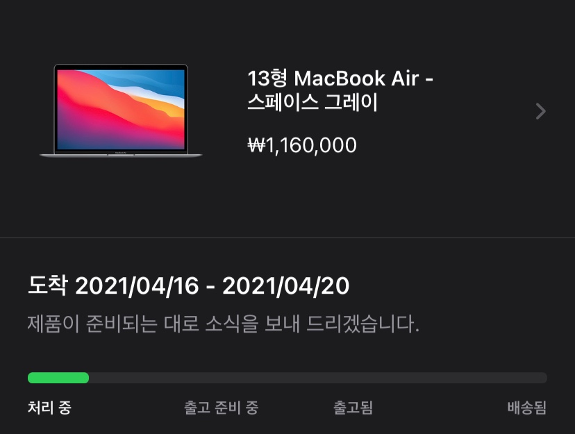 4월 16~20일 예정이라면 곧 출고 되지 않을까 생각이 듭니다.