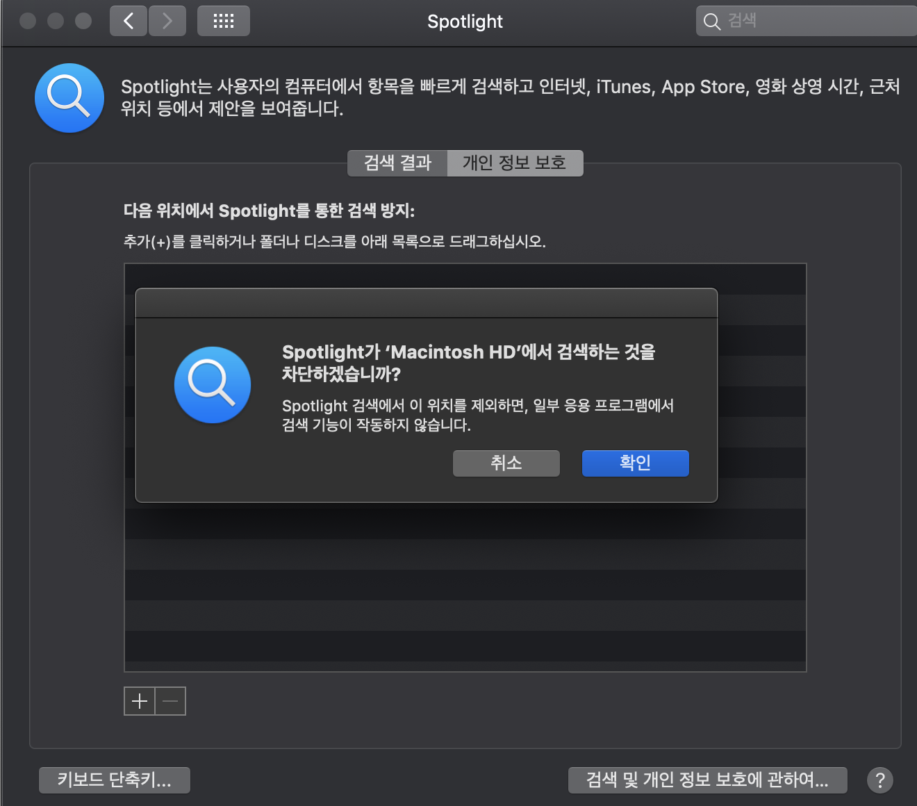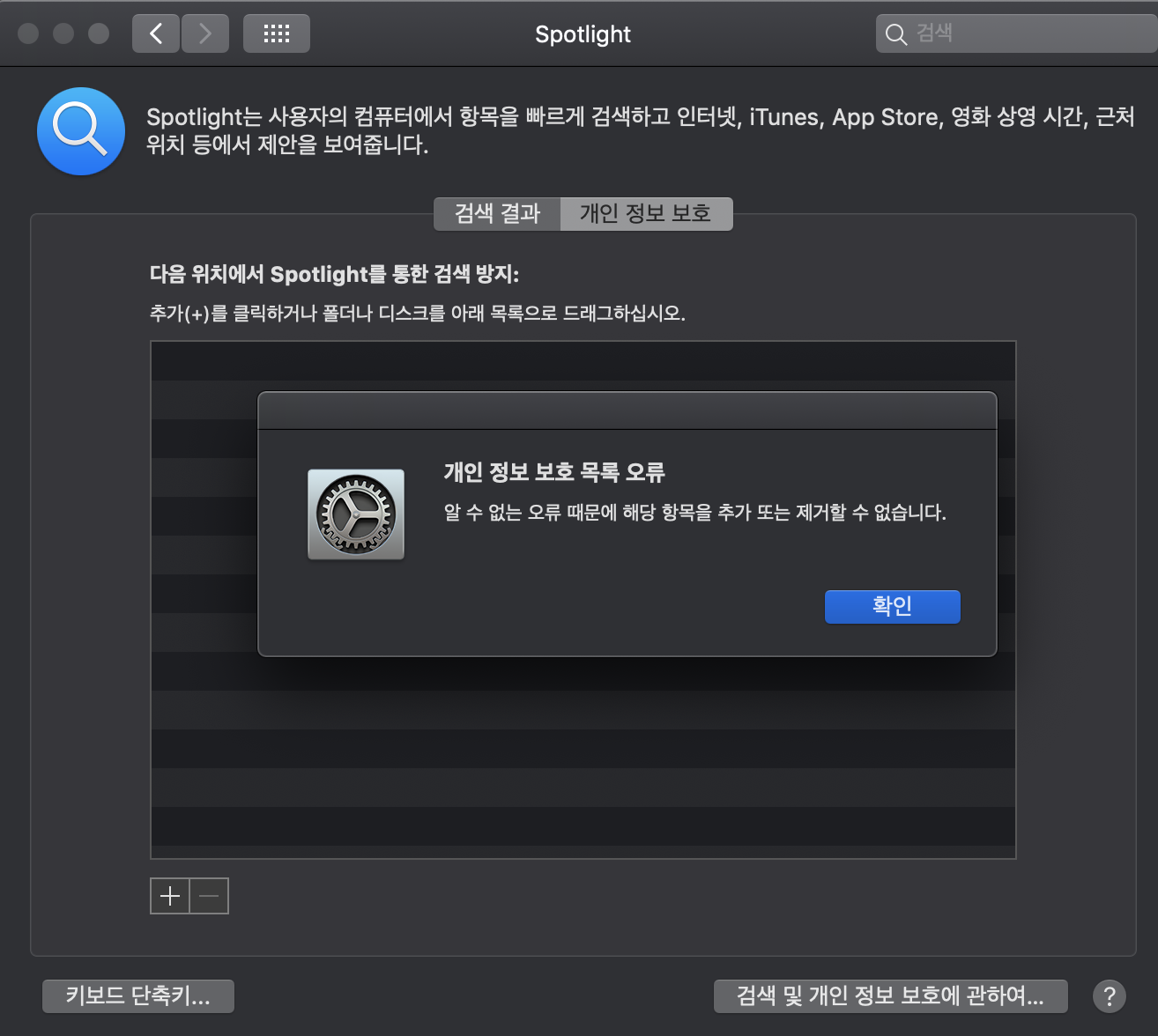 스포트라이트에서 인덱스 재구성하면 된다는 포스팅을 보고 따라했는데