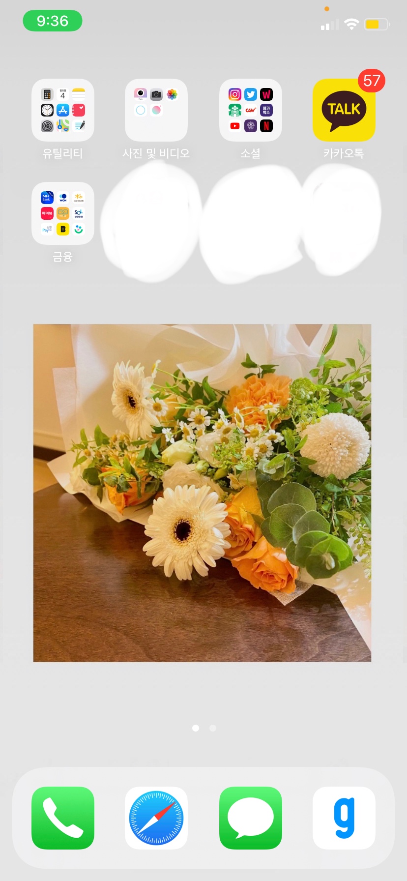 홈 배경화면을 위아래 흰색인 사진으로 해놨는데