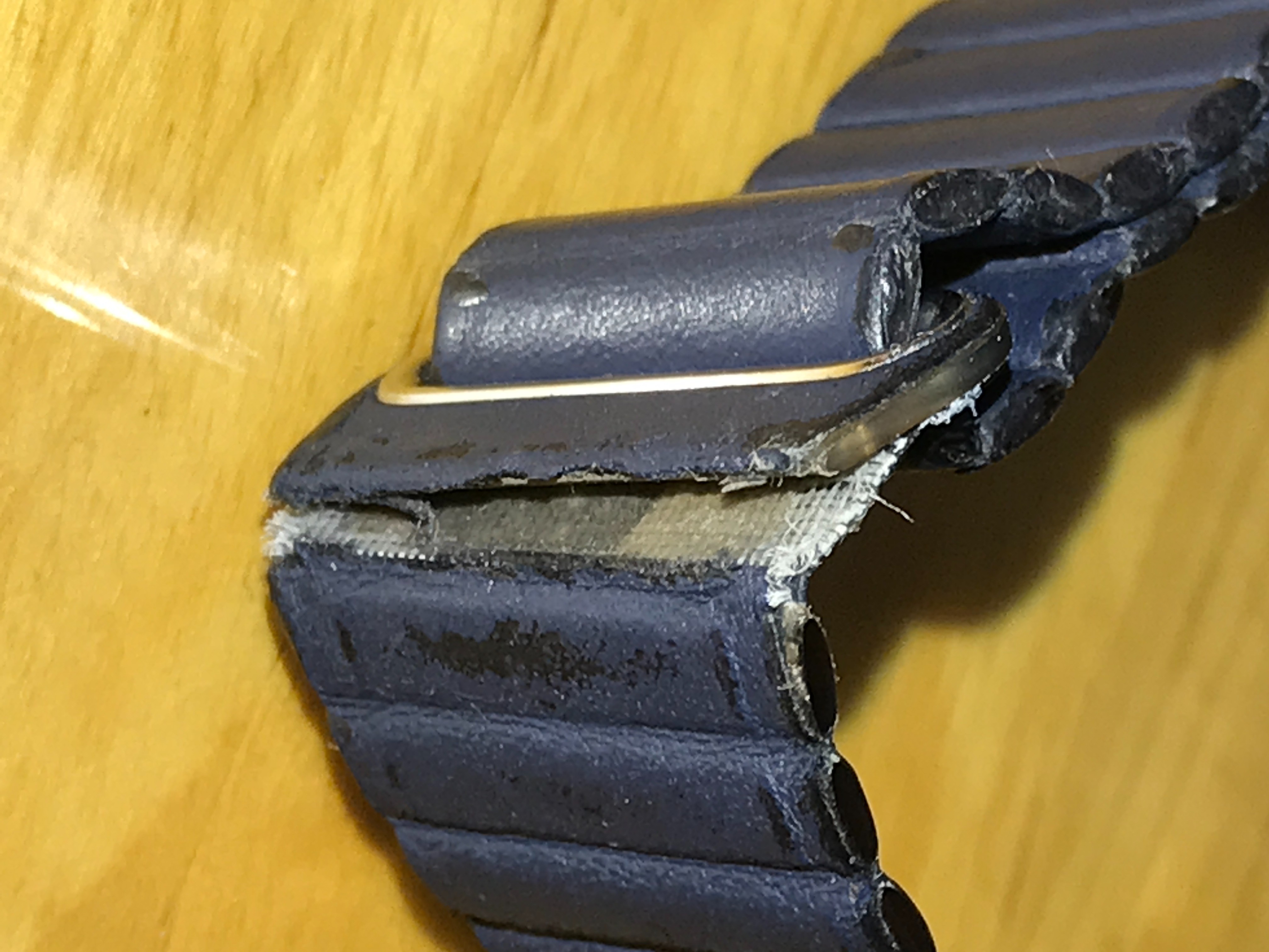 서비스센터 방문하여 가죽이니 흠집이 있는것 인정하나 10개월만에(실제 사용은 6개월정도) 사진처럼 고리부분의 가죽이 끊어지며 접착이 떨어지는것은 문제가 아니냐고 이의 제기하니 엔지니어도 반신반의하며 애플센터에 문의 해 본결과 워치 액세서리는 손상(흠집)이 있으면 무조건 유상처리한다는 답변