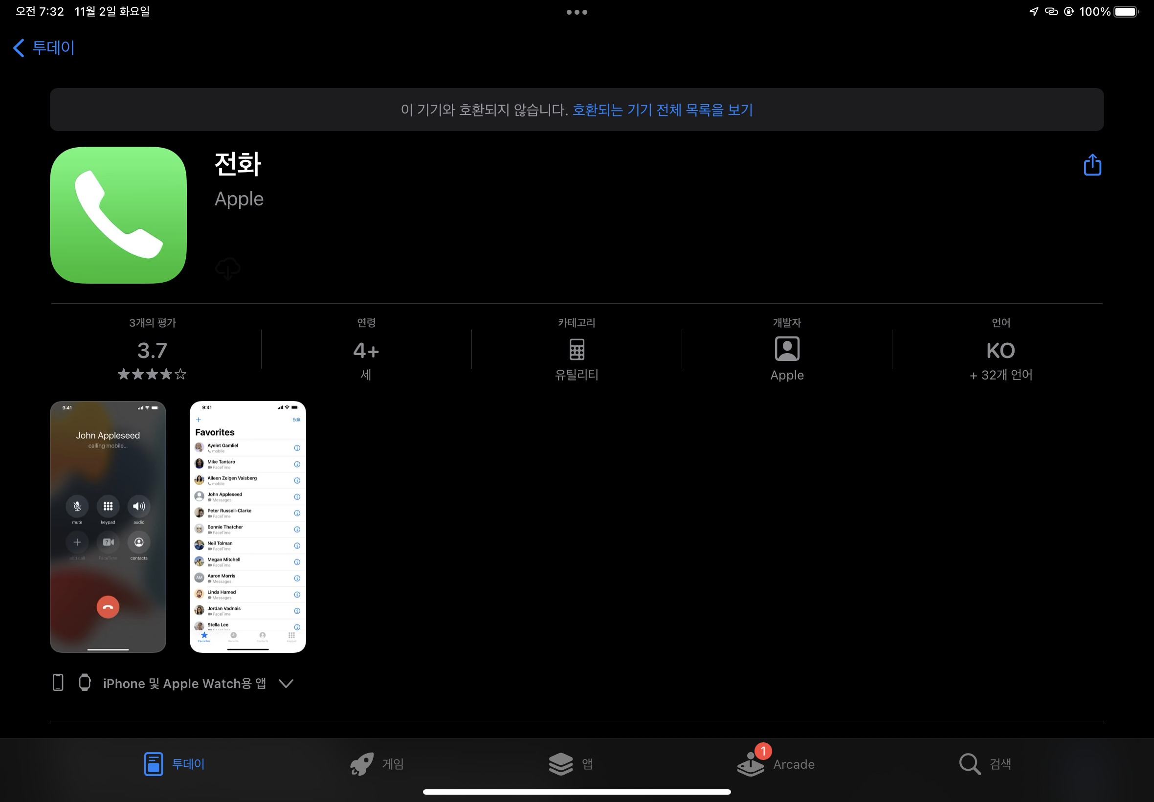 전에 게시물적성에 아이패드로 전화어플 다시 다운로드 하는 법 물어봤는데 앱 스토어에 있다고 하셔서 들어가서 찾아봤는데 호환되지 않는다는 글이 써져있고 다운로드 하는 아이콘이 없어요 업데이트도 해서 ios 15.1인데 왜 안될까요?