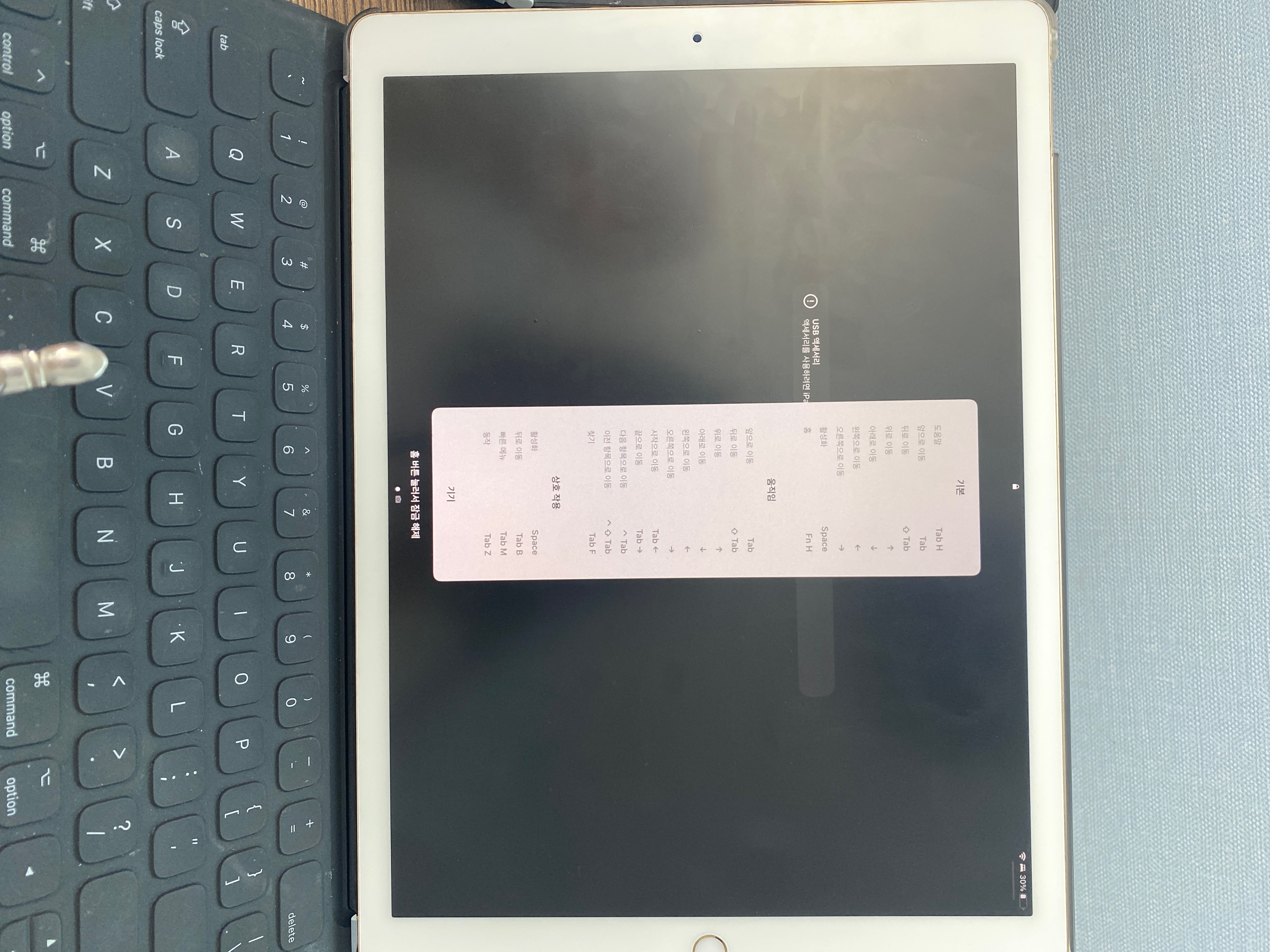 사진속에 있는 창은 iPad 키보드에서 command(⌘) 키를 길게 누를때 뜨는 단축키 도움말 창입니다.