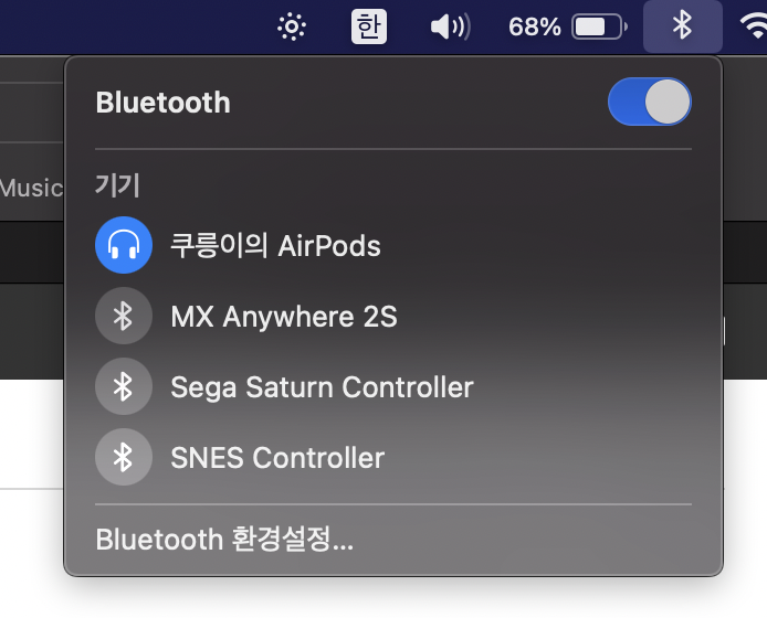 사운드에서는 블루투스 모양이 떠서 꽤나 불편합니다.