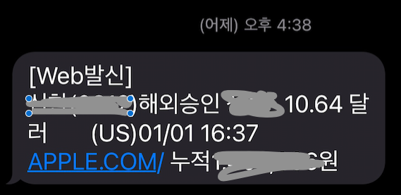 어제 오후 감자기 10.64달러 결제 되었다는 문자를 받았는데