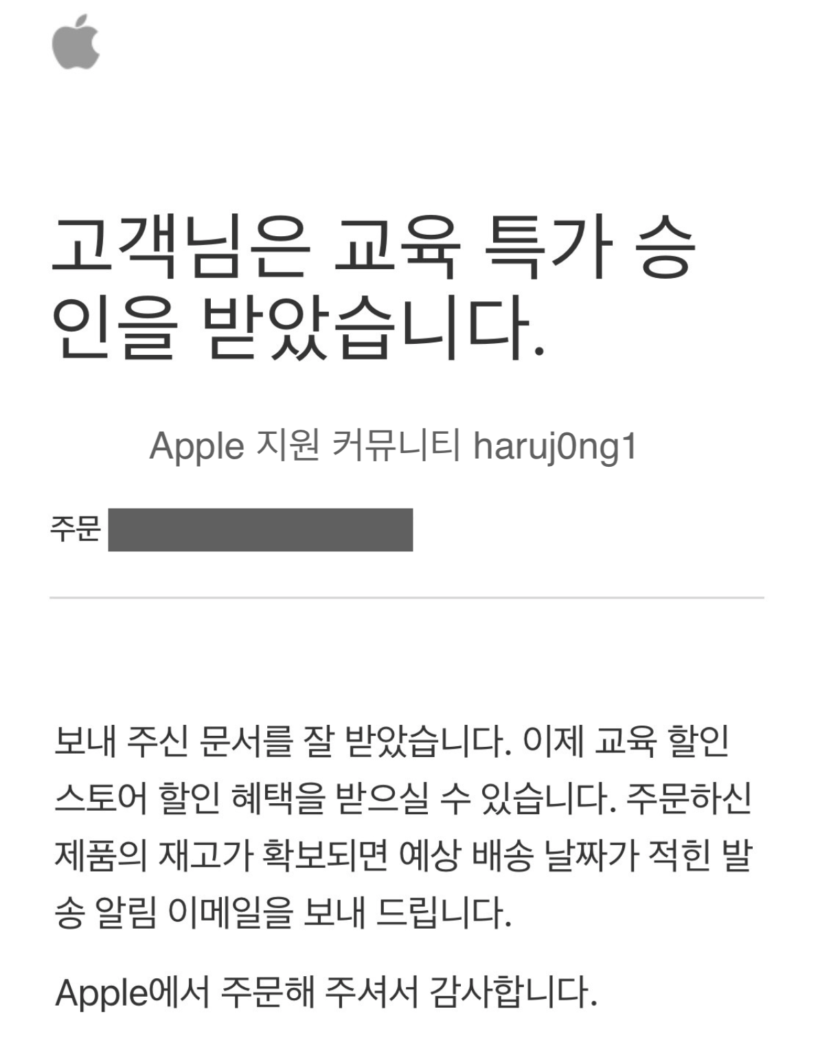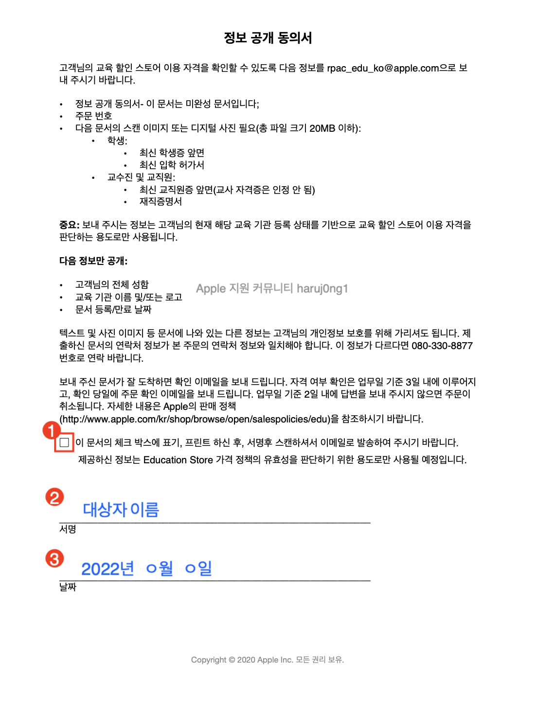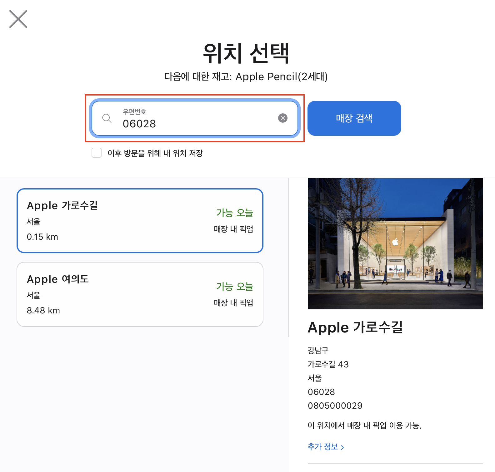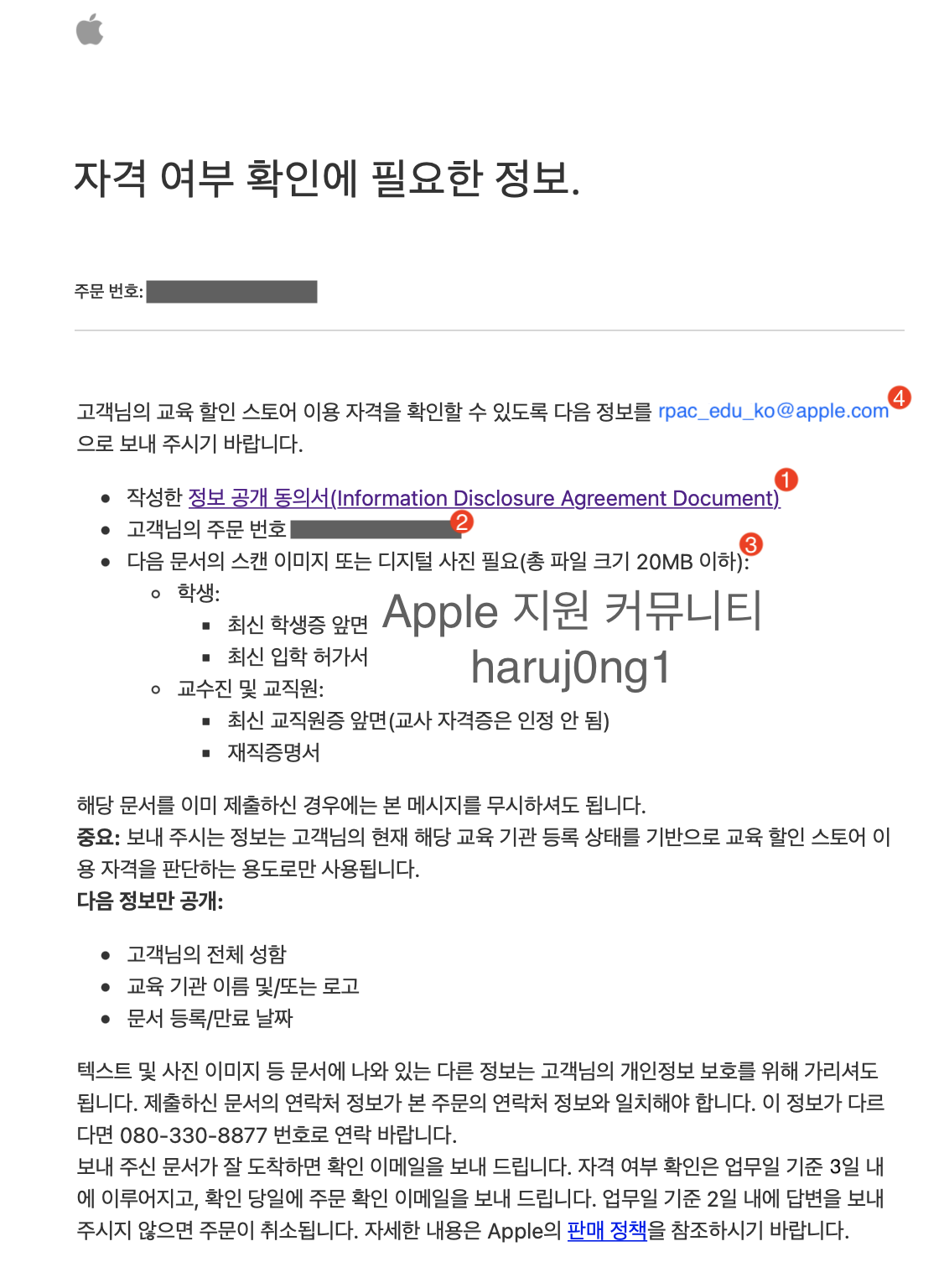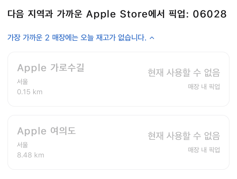 자세한 사항은 Apple Online Store 080-330-8877에 전화를 걸어 지원 받아보십시오.