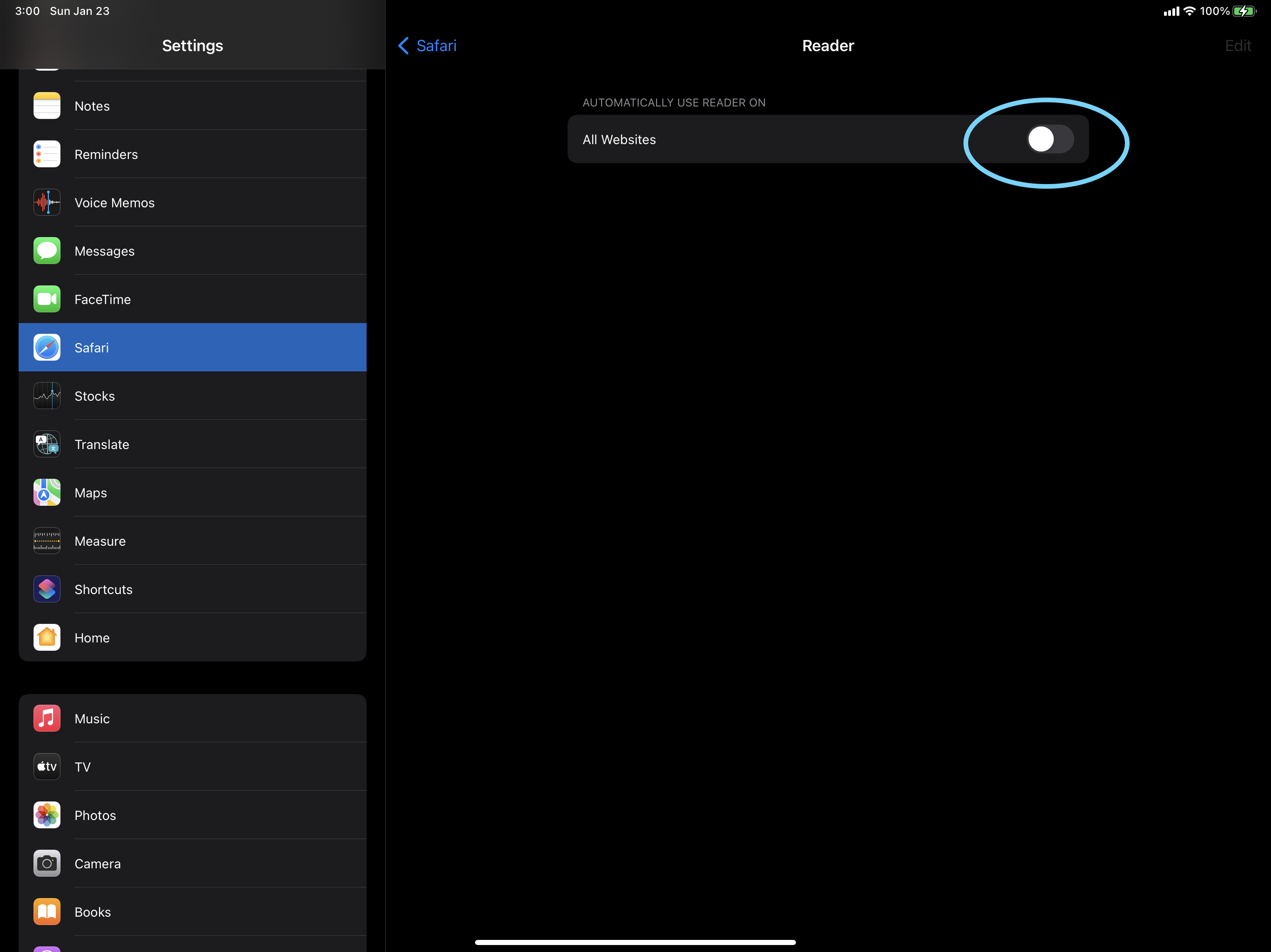 자동으로 읽기 도구로 되지 않게 비활성화 해보시기 바랍니다. (설정 - Safari - 읽기 도구)