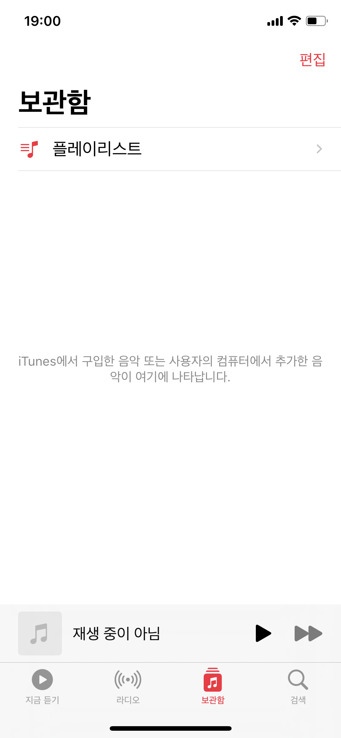 혹시 보관함에 음악은 iTunes 에서 다운로드한 음악인가요? 컴퓨터에서 동기화한 음악인가요?