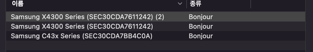 삼성 네트워크 프린터 추가 중 아래와 같이 프린터 목록이 중복이 발생되었습니다.