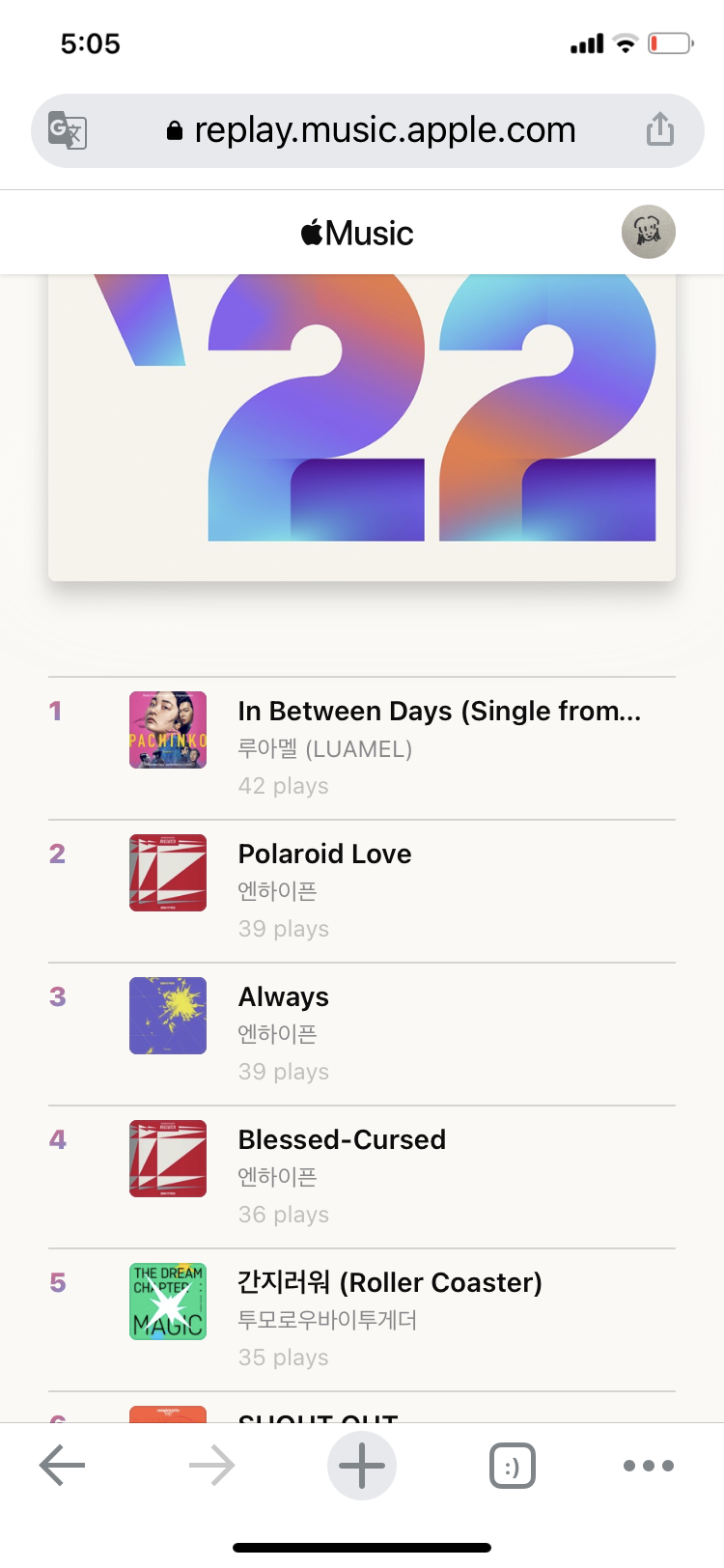 저기 1위로 되어있는 in between days는 제가 보관함에 추가해놓고 서너번밖에 안들은 노래인데요 오늘 보니까 갑자기 저 노래가 가장 많이 들은 곡 1위로 되어있더라구요... 어떻게 된건가요? 전 저 노래를 42번이나 들은 적도 없을 뿐더러 10번 이상도 안들어봤는데요... 그리고 일주일이 지나면 노래 재생 횟수가 줄어들어 있다던지 그런 오류도 굉장히 자주 있고요 보관함이랑 동기화도 해놨고 기록 수집 허용? 그런것도 다 해놨는데 제가 들은 것 만큼 집계가 안되는 것 같아요 왜 그런건가요?