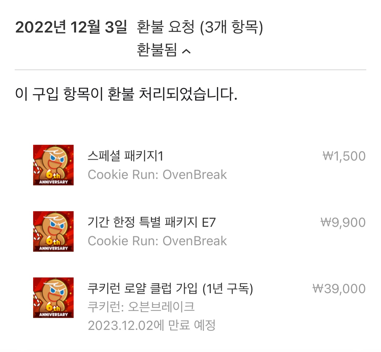쿠키런 오븐 브레이크 환불은 됐다고 정보는 뜨는데
