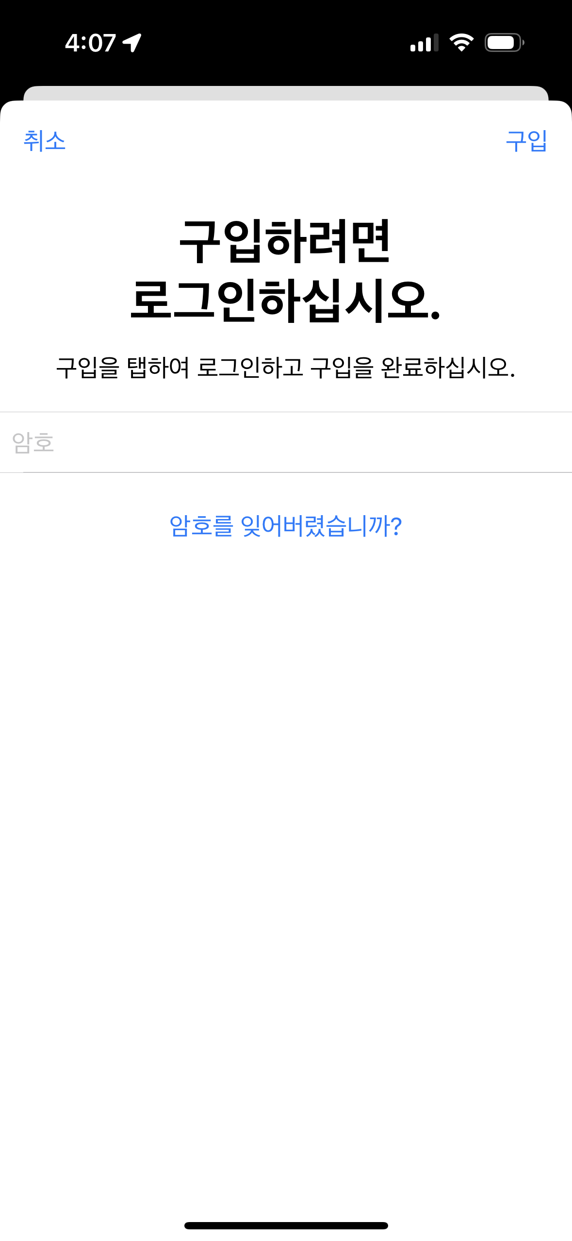 아이폰 게임 결재를 하려고 카카오페이를 연동하고 결재를 하려니 구입하려면 로그인 하싲쇼 해서