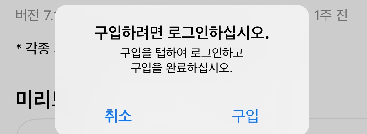 그이후 시간이 지난후 제가 삭제했던 앱 받기 버튼이 아니라 구름 모양으로 되어있는 앱을 받으려는데 구입하려면 로그인 하십쇼라는 내용이 계속 나옵니다 제발 부탁드립니다 해결 방법이 뭘까요