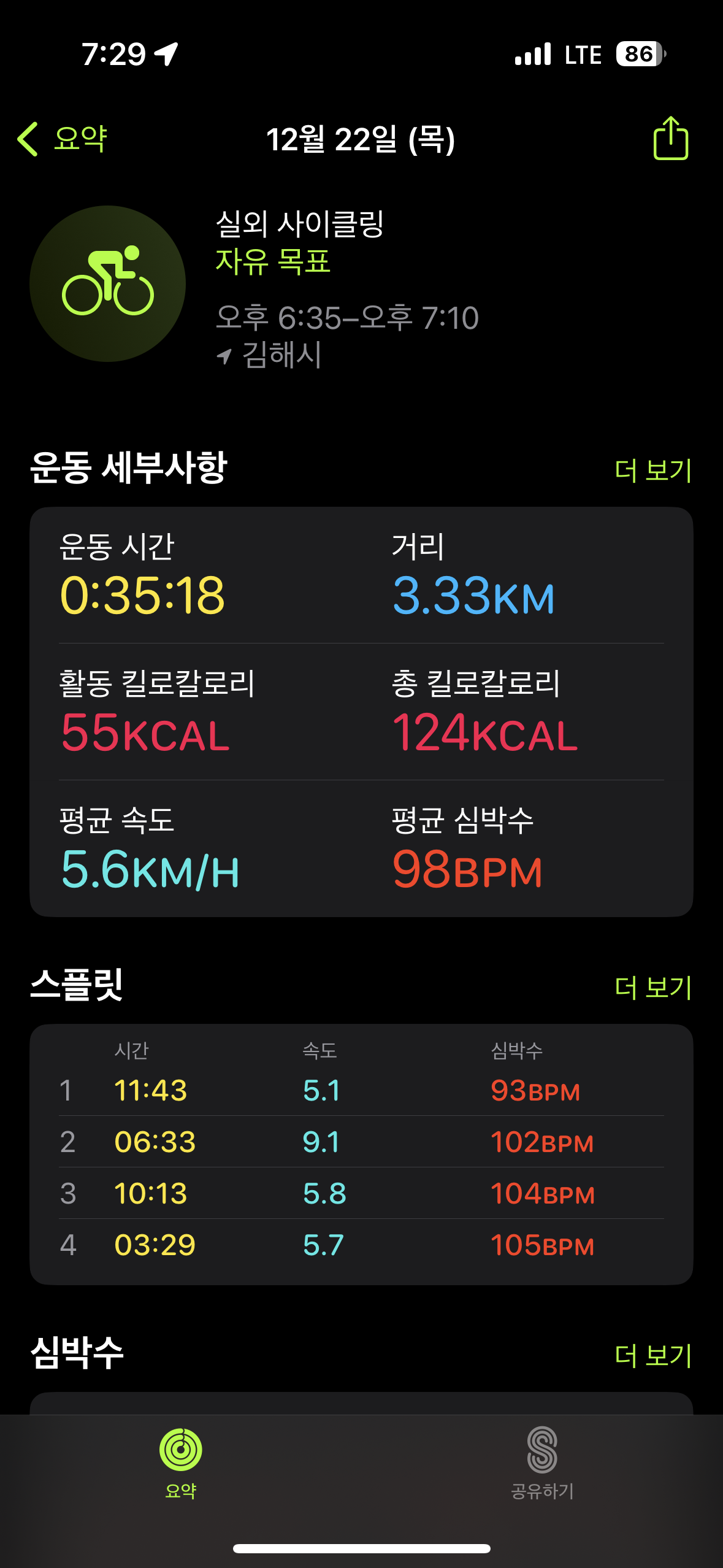 애플워치 실외사이클링 운동시 거리 시간 등 엄청 자세히 기록되는건 정말 좋은데