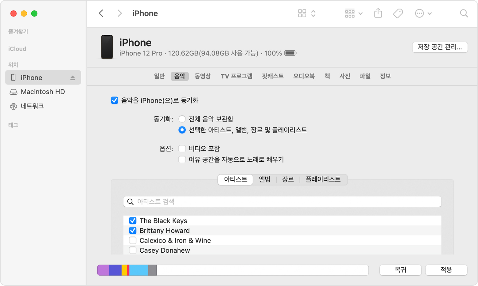 맥북에어M1 에서 아이팟나노 7세대 모델이 파인더에서는 인식은 (외장하드로 ) 되지만 동기화 활성이 되지 않습니다.