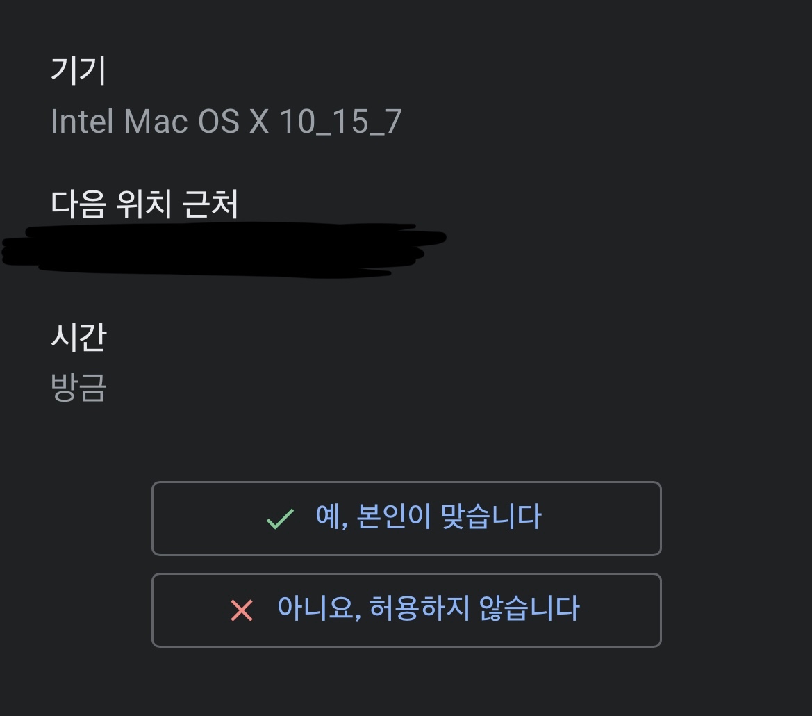 구글에 로그인 하면서 intel Mac OS 라고 뜨는데 맞는 건가요 ?