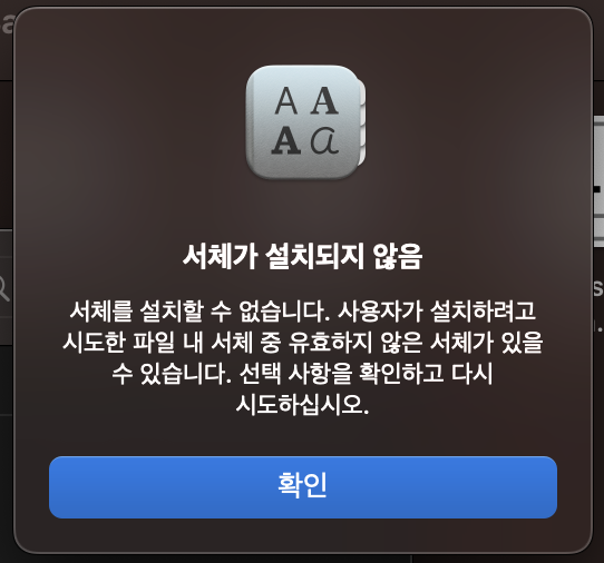 서체 설치가 안됩니다. 유효성 문제라고 뜰 때도 있고 아무것도 안 떠도 설치가 전혀 안되는데, 설치 할 수 있는 방법을 알려주실 수 있나요?
