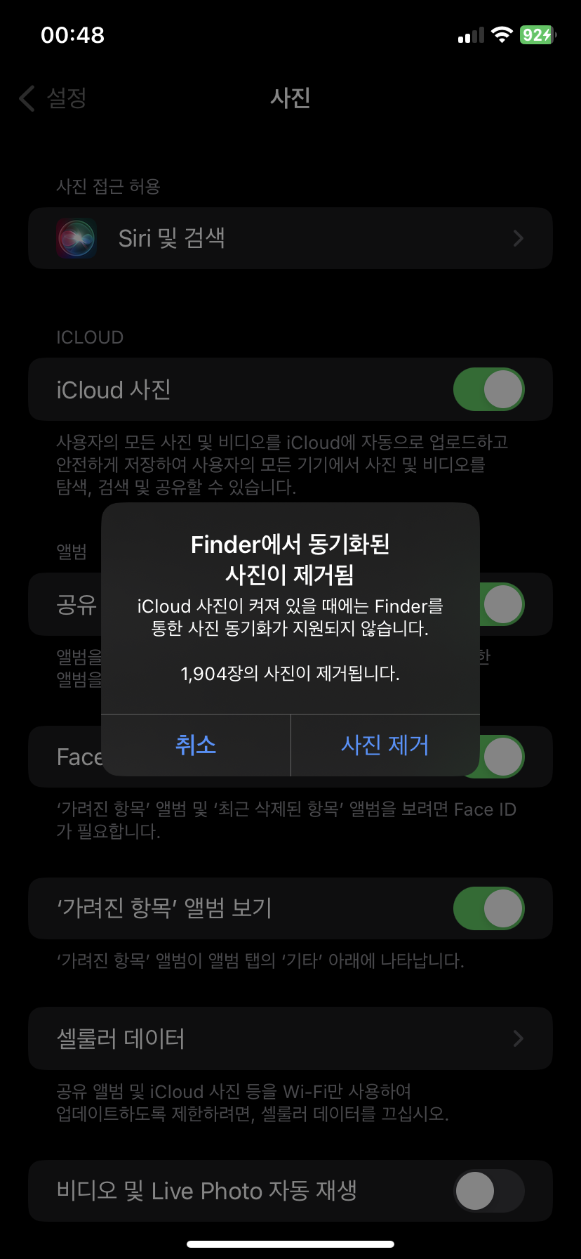 아이클라우드 활성화 하면 사진 삭제가 되는데 해결방법있나요? 아이클라우드를 활성화 해서 사용하려는데 ‘Finder에서 동기화된 사진이 제거됨. iCloud 사진이 켜져 있을때에는 Finder를 통한 사진 동기화가 지원되지 않습니다.’라는 메세지가 뜹니다. 이 사진은 아이폰에 있는 사진인가요? 그럼 아이맥에서 사진으로 전송한 뒤에 활성화 하고 다시 가져오기 할 수 있나요?