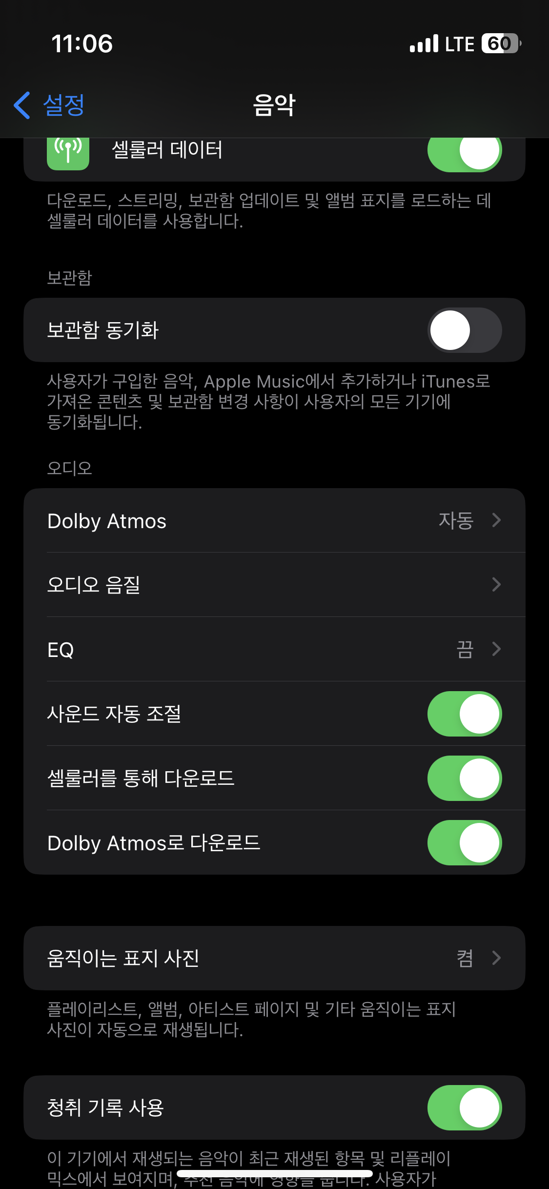 저전력모드의 경우 작동하지 않으며, 모든 앨범에서 적용되진 않습니다.