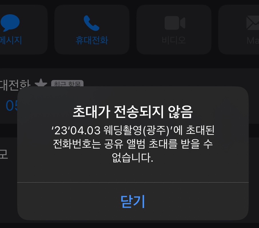 내용을 읽어보니 공유앨범에 상대방의 전화번호를 이용하여 초대를 하려고 하셨던 상황인듯 하네요.