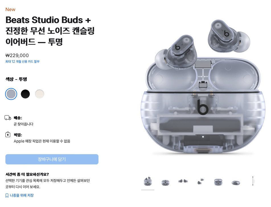 이전 세대보다 액티브 노이즈 캔슬링 성능이 향상됐고 무엇보다 투명 색상이 추가되어