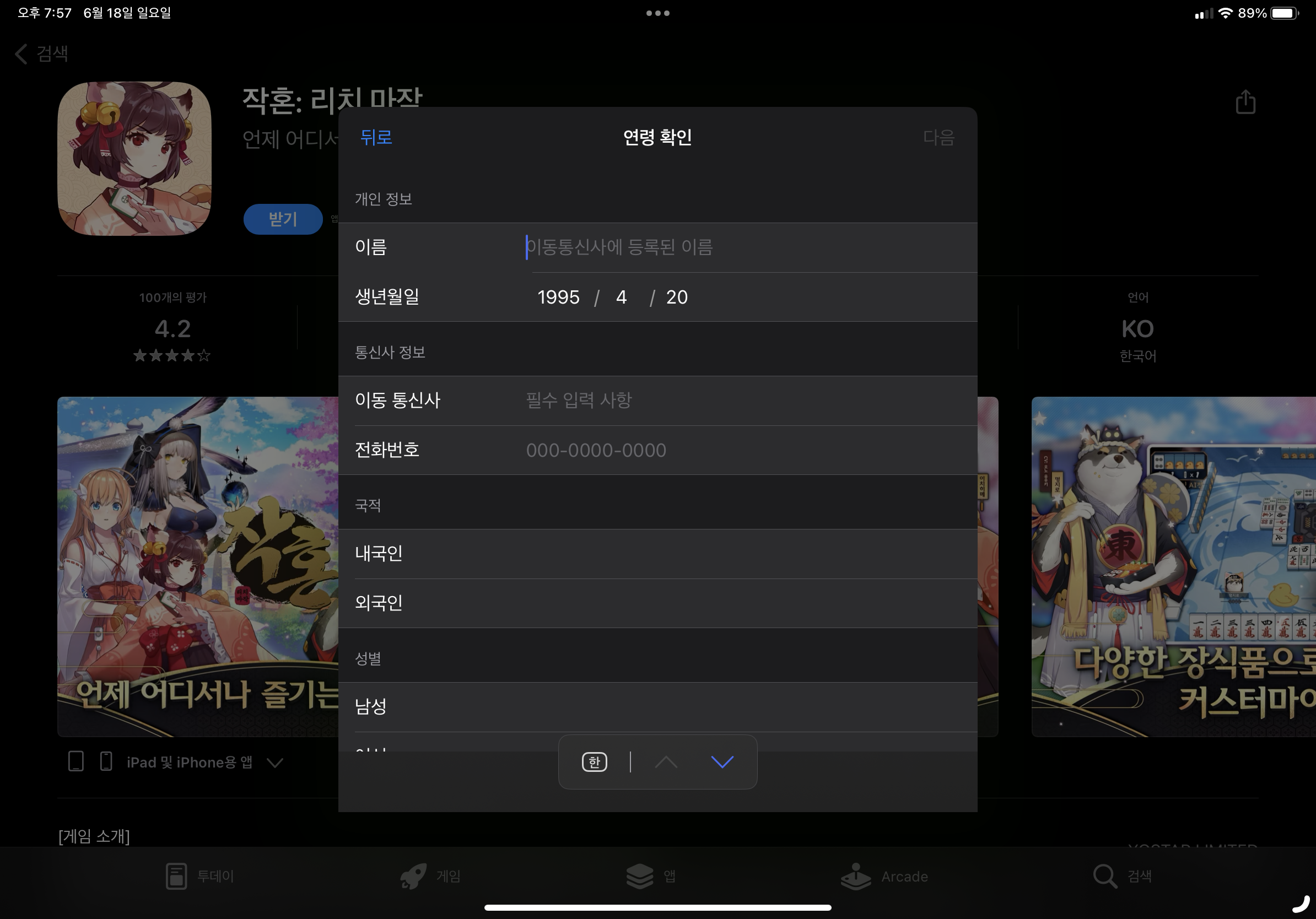 아이패드 앱스토어 연령확인 이동통신사 선택시 팝업창이 내려가는 오류가 생기는데 어떻게 해결해야하나요?