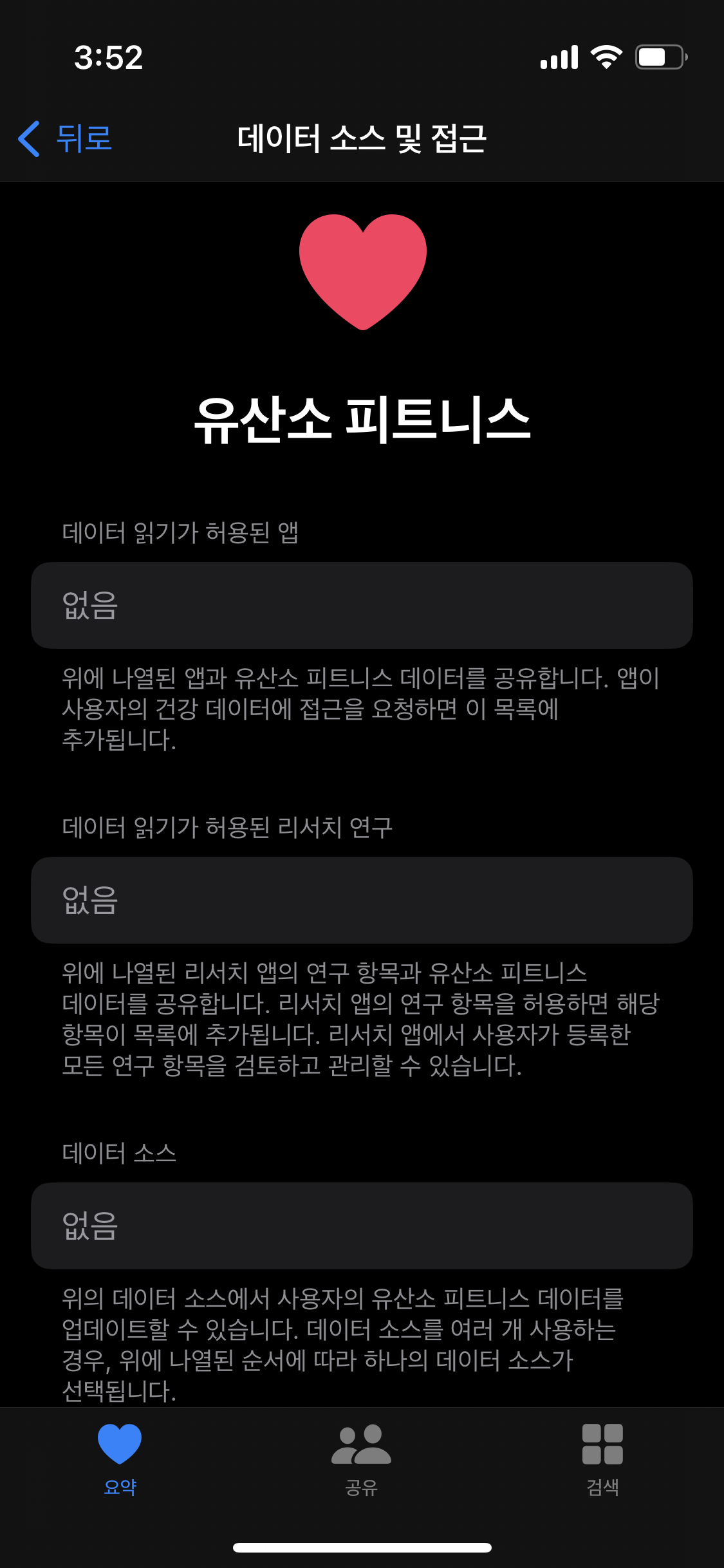 보니까 데이터 소스가 없다고 나오는데요. 애플 워치와 폰의 연결을 끊었다 재연결 해봤는데도 안돼네요; 확인부탁드려요.