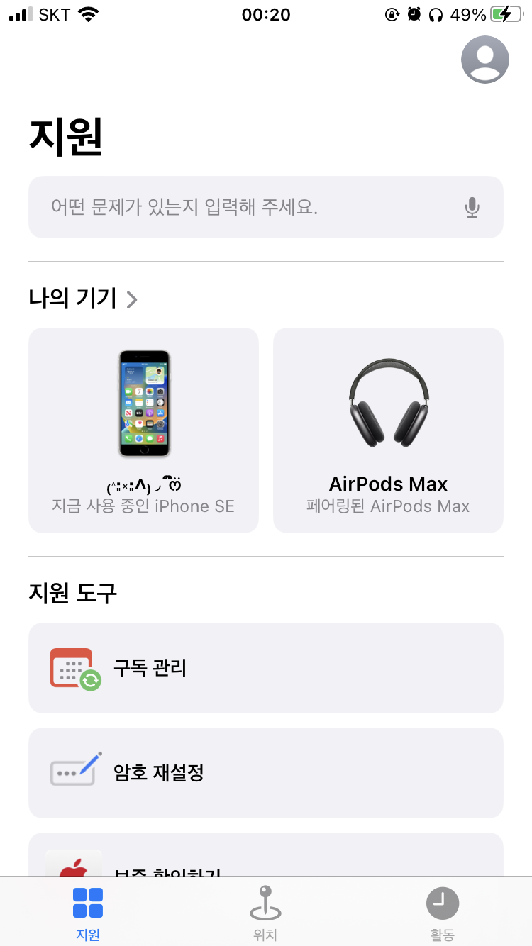 애플 지원 앱 설치하고 헤드셋 이미지 사진을 확인해보니까 지원 앱에서는 블랙으로 나오는데..