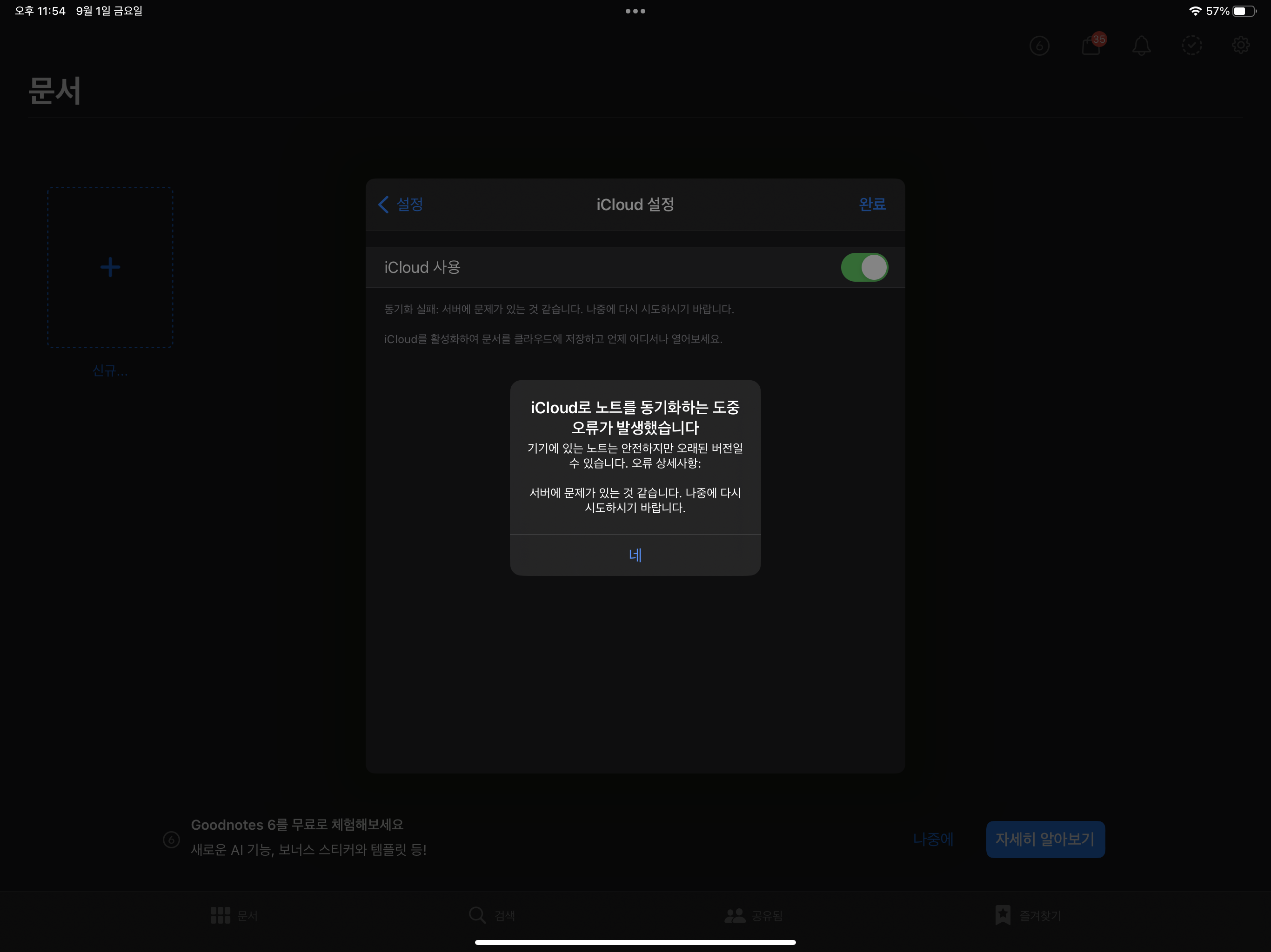 iPad Pro 굿노트에서 iCloud 작동이 안되는데 뭐가 문제일까요?