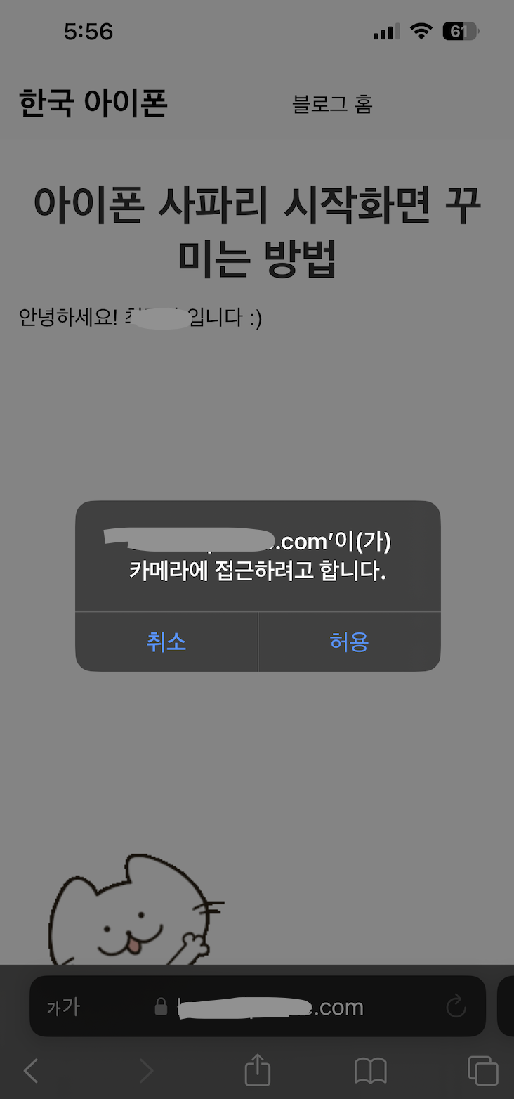 iPhone 15에서 웹사이트가 카메라 권한 허용을 요구합니다. 저 웹 사이트 방문한 것으로 제 아이폰에 문제가 생기거나 해킹당할 가능성같은게 있을까요?