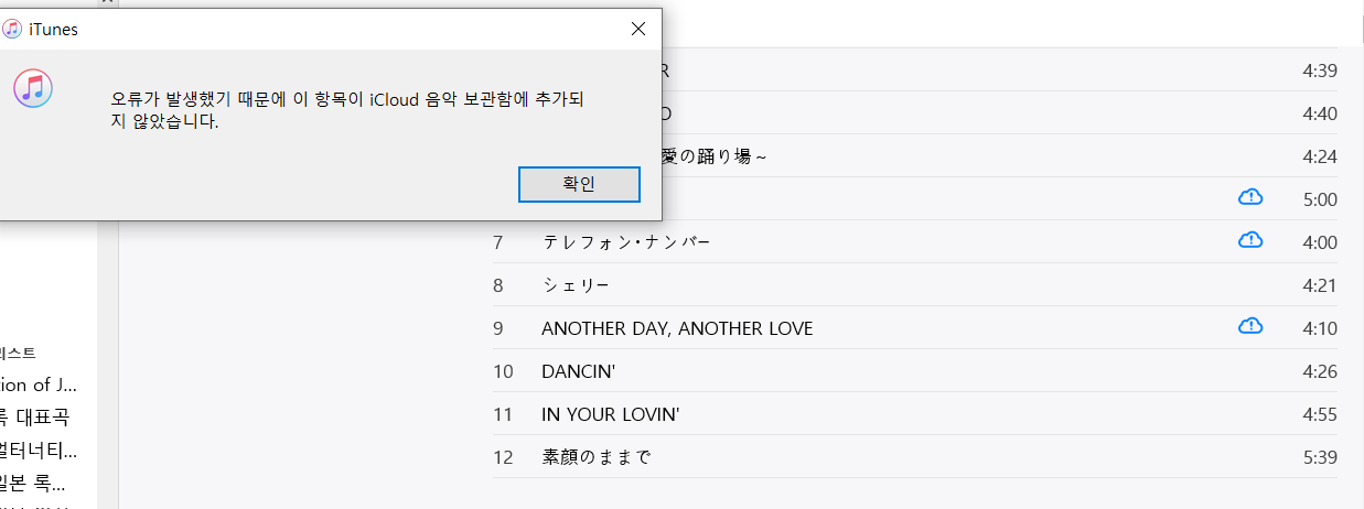 '오류가 발생했기 때문에 이 항목이 iCloud 음악 보관함에 추가되지 않았습니다.' 라는 오류 메세지가 뜨는데 해결방법있을까요?