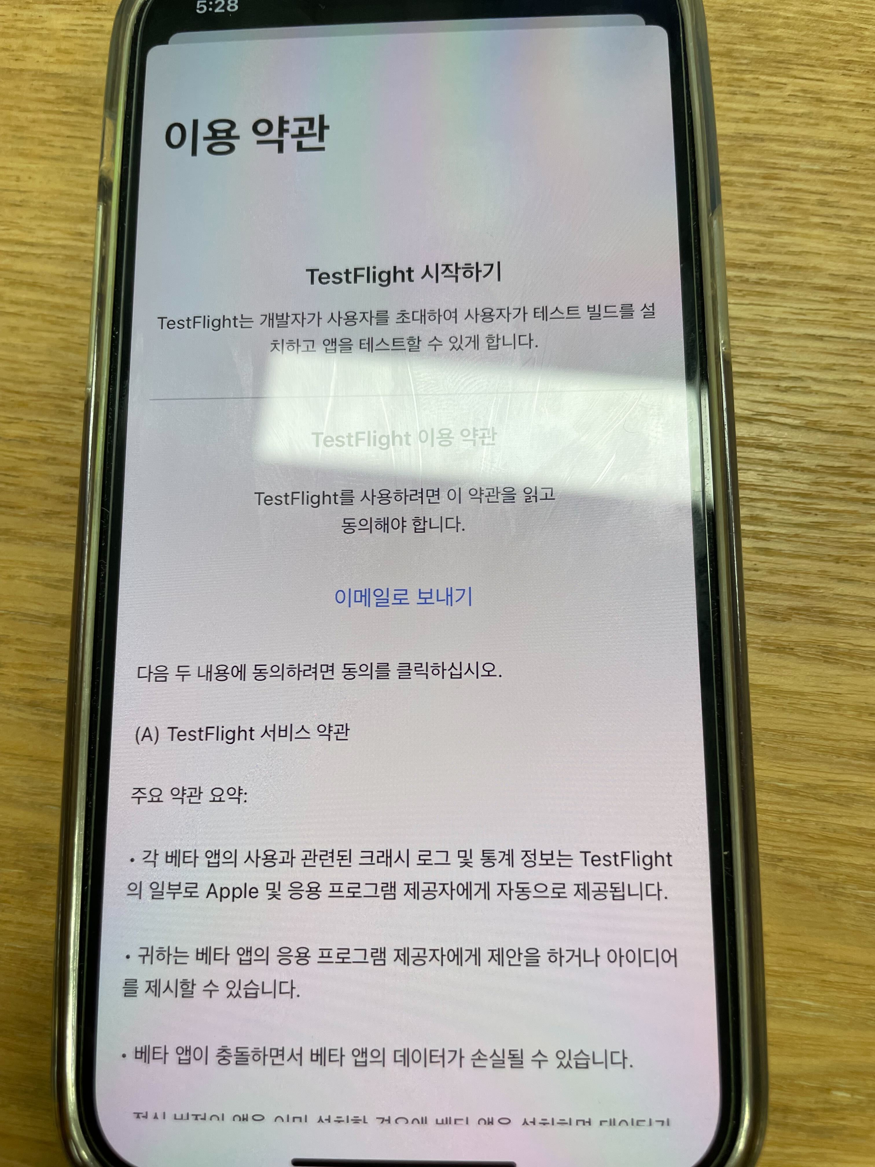 iPhone 12 Pro에서 TestFlight 이용 시 최초 이용 약관 동의 버튼이 존재하지 않습니다. 어떻게 해야하나요?