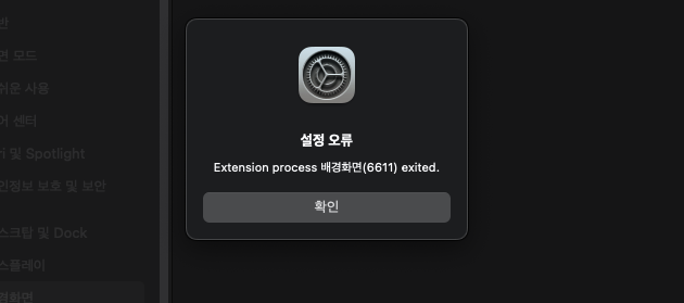 m1 MacBook 배경화면을 파노라마 이미지로 변경시도 했는데, 'Extension process 배경화면 (6611) exited.' 에러가 발생합니다. 배경화면을 다시 원래대로 되돌리고 싶은데 어떻게 변경할수 있을까요?