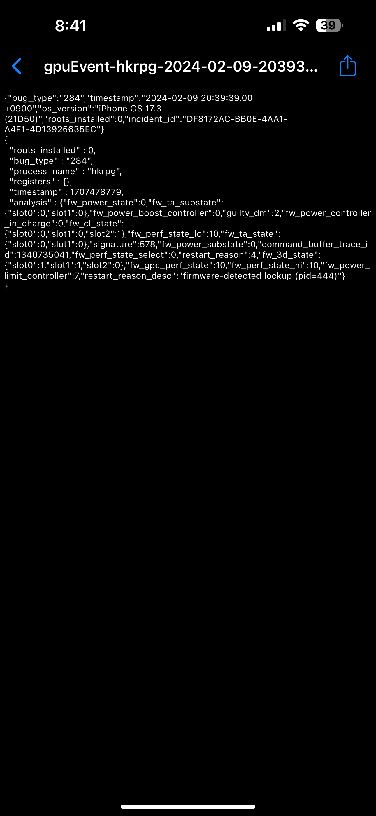 아이폰 공장 초기화를 세 번은 한 거 같은데 사진처럼 특정 앱과 상관없이 분홍색 픽셀 깨짐과 함께 화면이 깜빡거리고 멈추는 현상이 발생합니다. 분석 데이터를 확인해 본 결과 gpuEvent 라고 로그가 뜨는 시각과 해당 현상이 일어난 시각과 똑같은 걸로 봐서 결과적으로 gpu 쪽 결함이 아닌가 의심이 되는데 이럴 경우 다시 서비스센터에 가봐야 합니까? 구매한 지 1달도 안됐는데 계속 이러니까 미칠 것 같습니다. gpuEvent 로그가 무슨 현상인지 이게 하드웨어가 아닌 소프트웨어 문제가 확실히 맞는 지 궁금합니다.