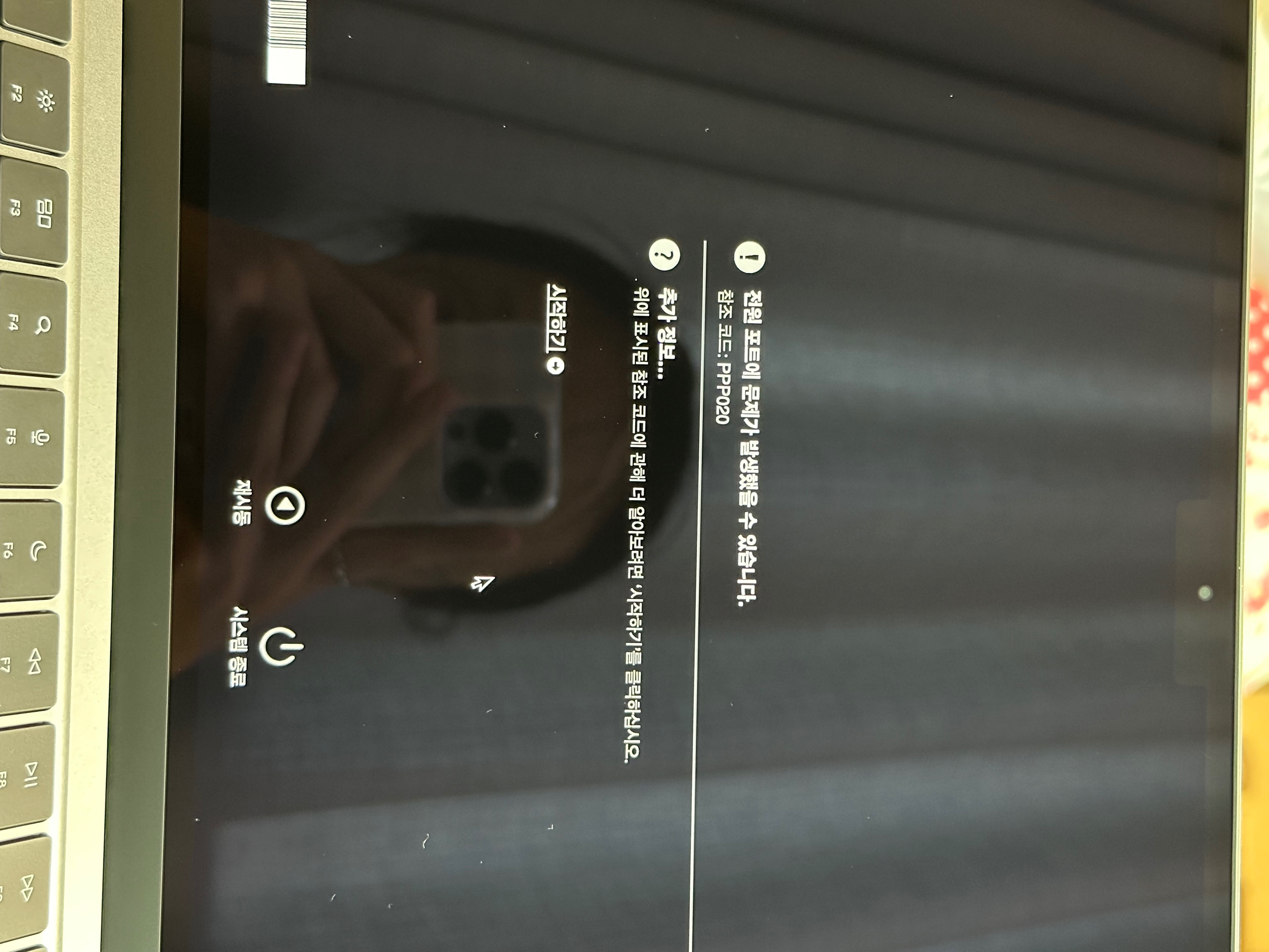 MacBook Air에서 자가진단 진행 시 참조코드 PPP020 뜸