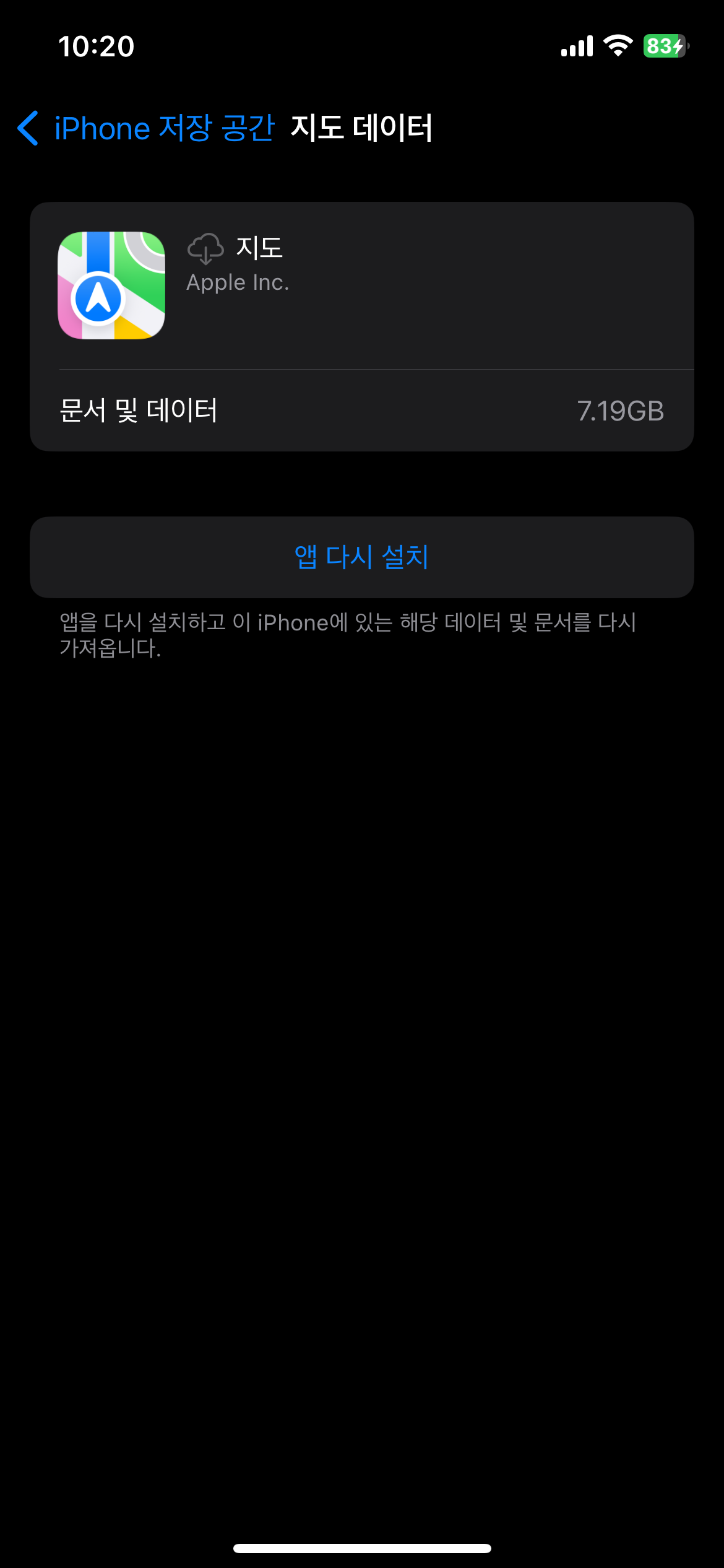 iPhone에서 지도 어플 데이터 삭제