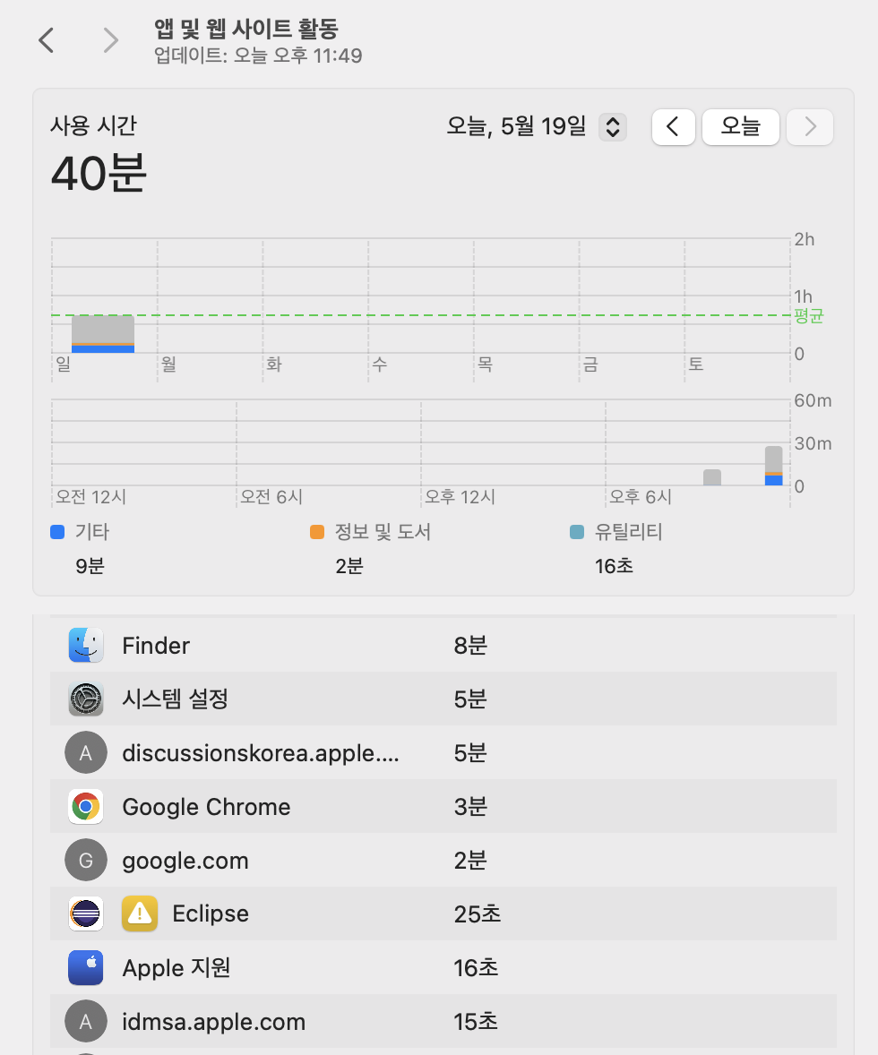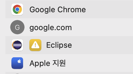 MacBook Pro 스크린타임에서 이클립스 옆에만 생기는 노란색 세모 아이콘