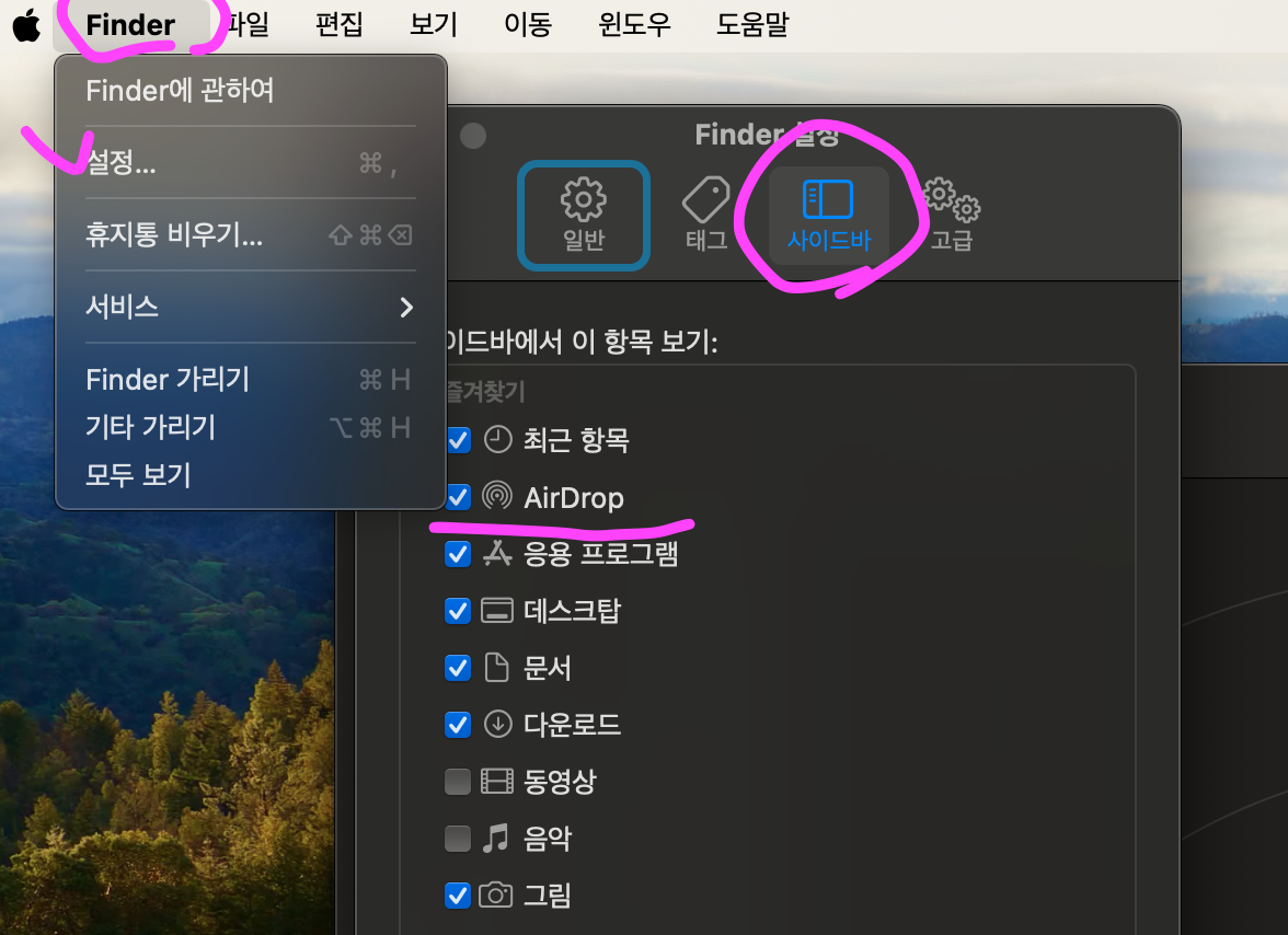 MacBook Pro 파인더 에어드랍 실수로 삭제