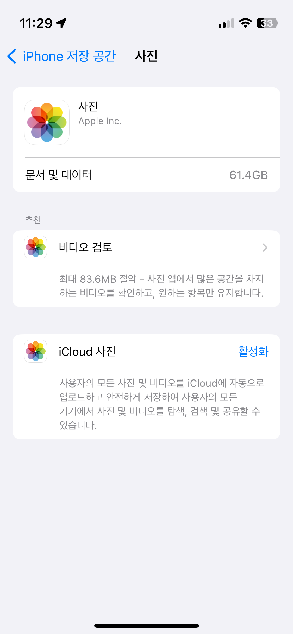 iPhone X에서 사진을 삭제해도 용량이 많이 남음