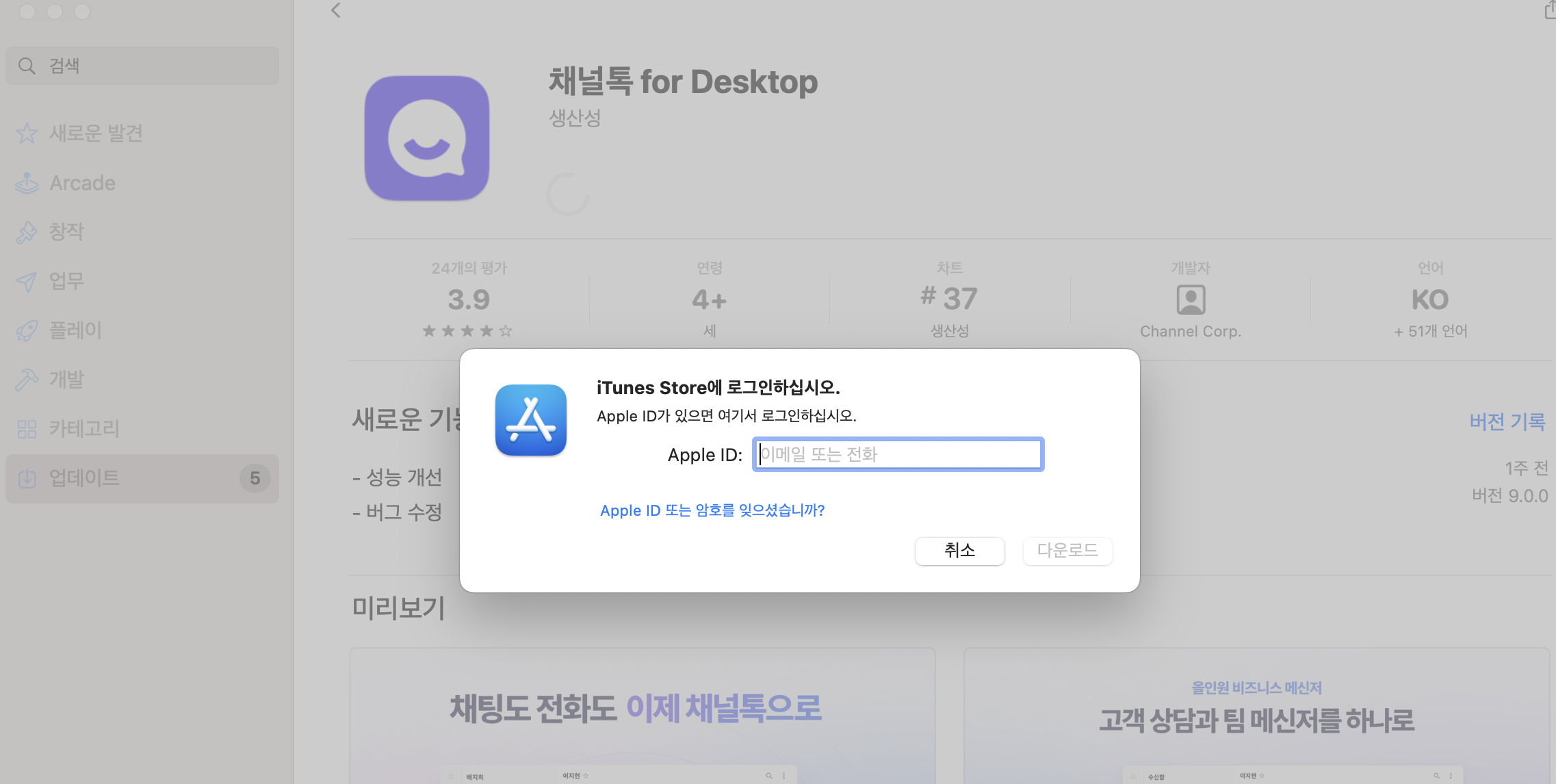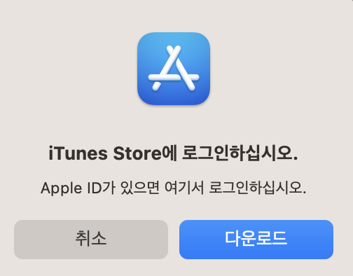앱스토어에서 업데이트를 시도하면, 애플 ID 로그인 창이 뜹니다.