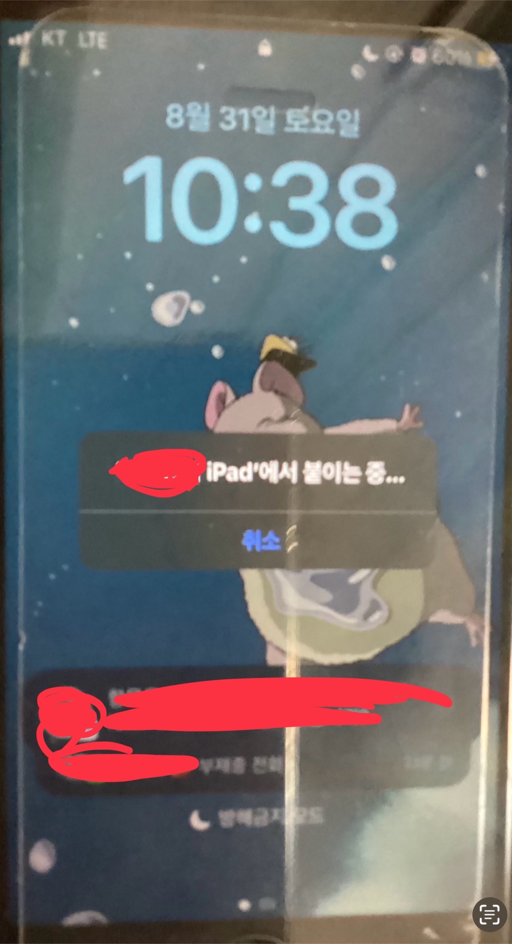 저는 아이폰 SE 1세대와 아이패드 9세대를 쓰고 있습니다.패드를 만지다가 폰에 알림이 떠서 봤는데 제 ‘패드에서 붙이는 중’이라고 뜨고 밑에 취소를 눌러도 없어지지 않아요.다른 터치나 그런 거 전혀 안되고요.밀어서 전원 끄기를 누르려는 데 그거 조차 안됩니다.강제 종료를 하려고 방법을 찾아보니 전원버튼이랑 소리 줄이기 버튼을 꾹 누르라더군요.그래서 해봤는데 밀어서 전원끄기랑 긴급요청이 떴는데, 종료는 전혀 안되고 SOS 게이지만 차버려서 할 수가 없네요..지금도 해결이 안되서 올려봅니다..ㅠ ㅠ