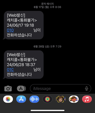 위 사진처럼 그동안 받지 못했던 연락이 일괄적으로 수신 됩니다.