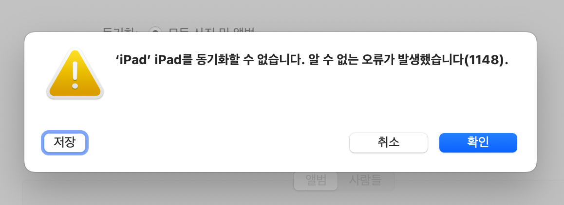 ipad를 동기화할 수 없습니다. 알 수 없는 오류가 발생했습니다(1148).