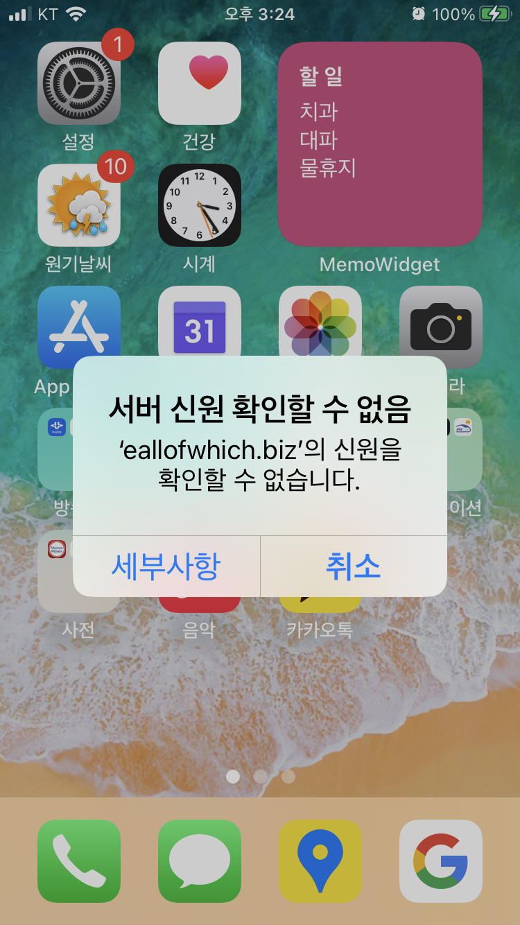 'eallofwhich.biz'의 신원을 확인할 수 없습니다 라는 메시지