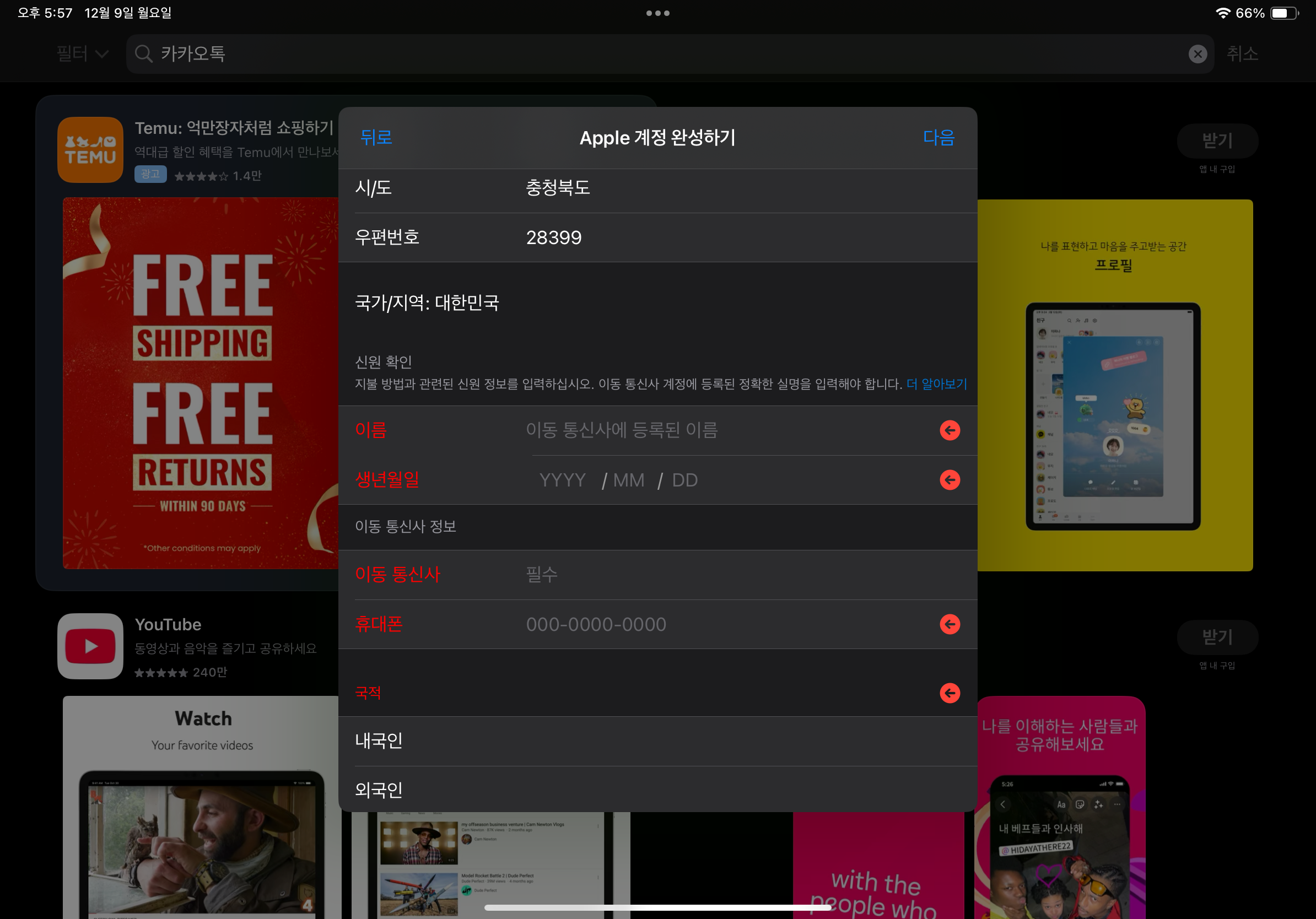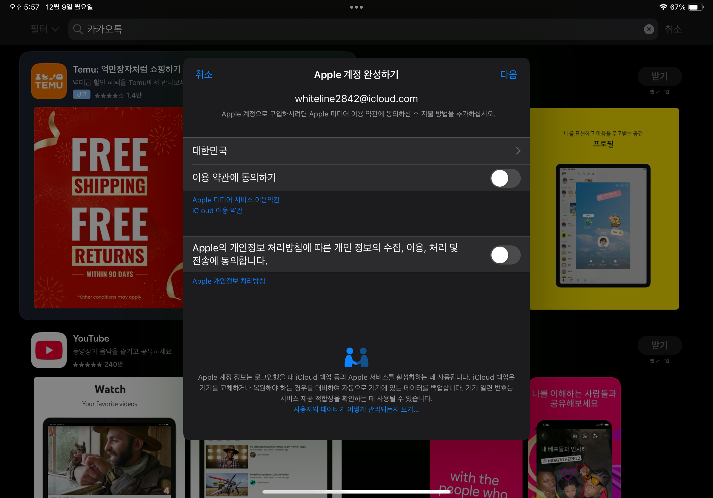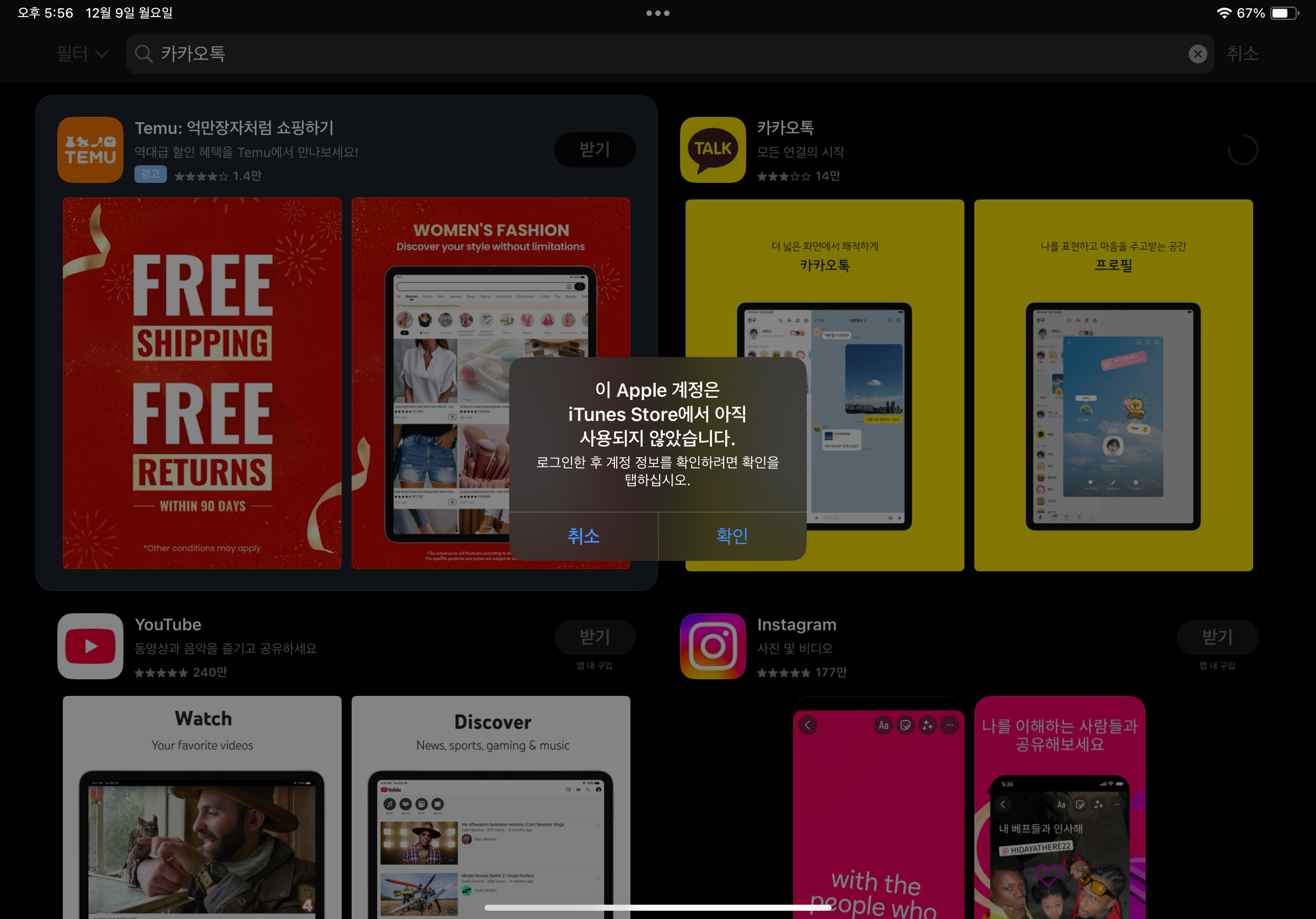 이 apple 계정은 아직 I tunes store에서 사용되지 않았습니다.