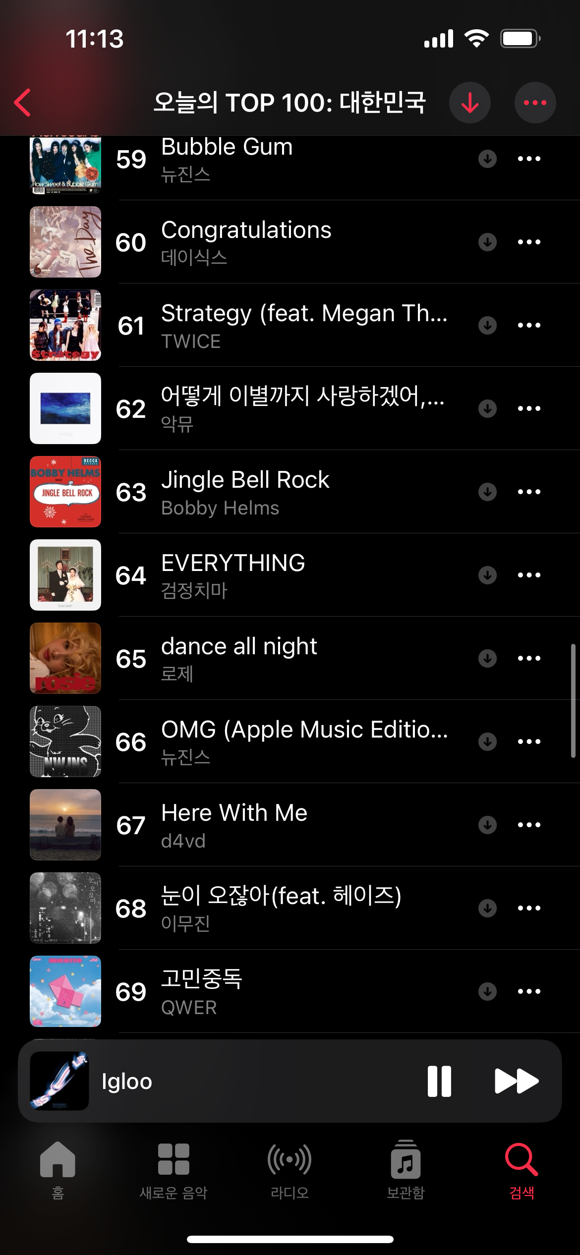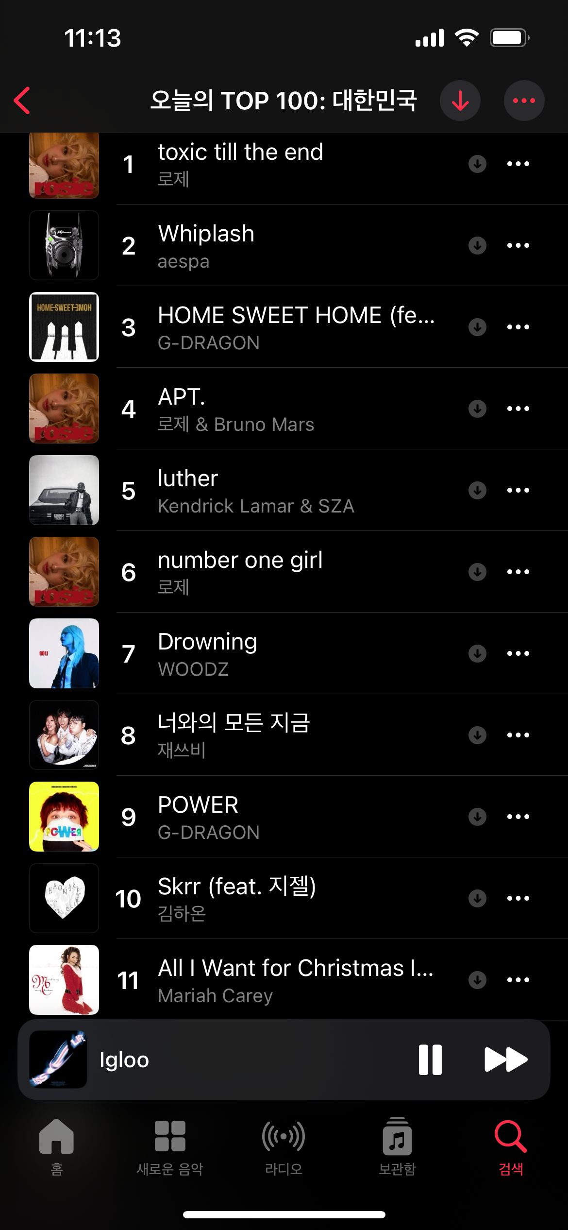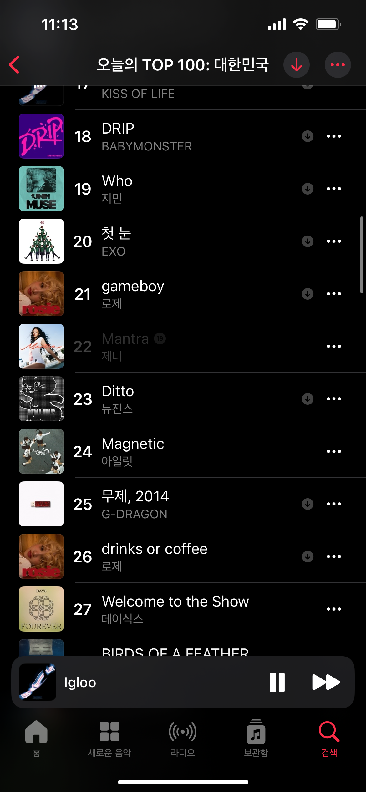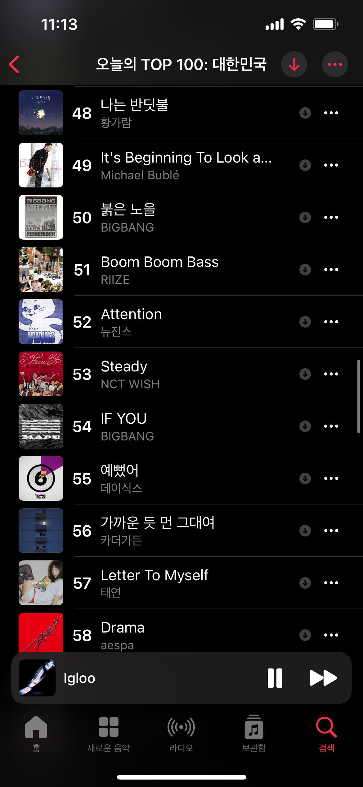 오늘의 top100을 보관함에 저장하고 다운로드를 했을때 잘 진행이 됬는데 제니 19금걸린곡이 다운로드가 멈춘이후로 사진처럼 아래에있는 곡들 대부분이 다운로드가 안됩니다.