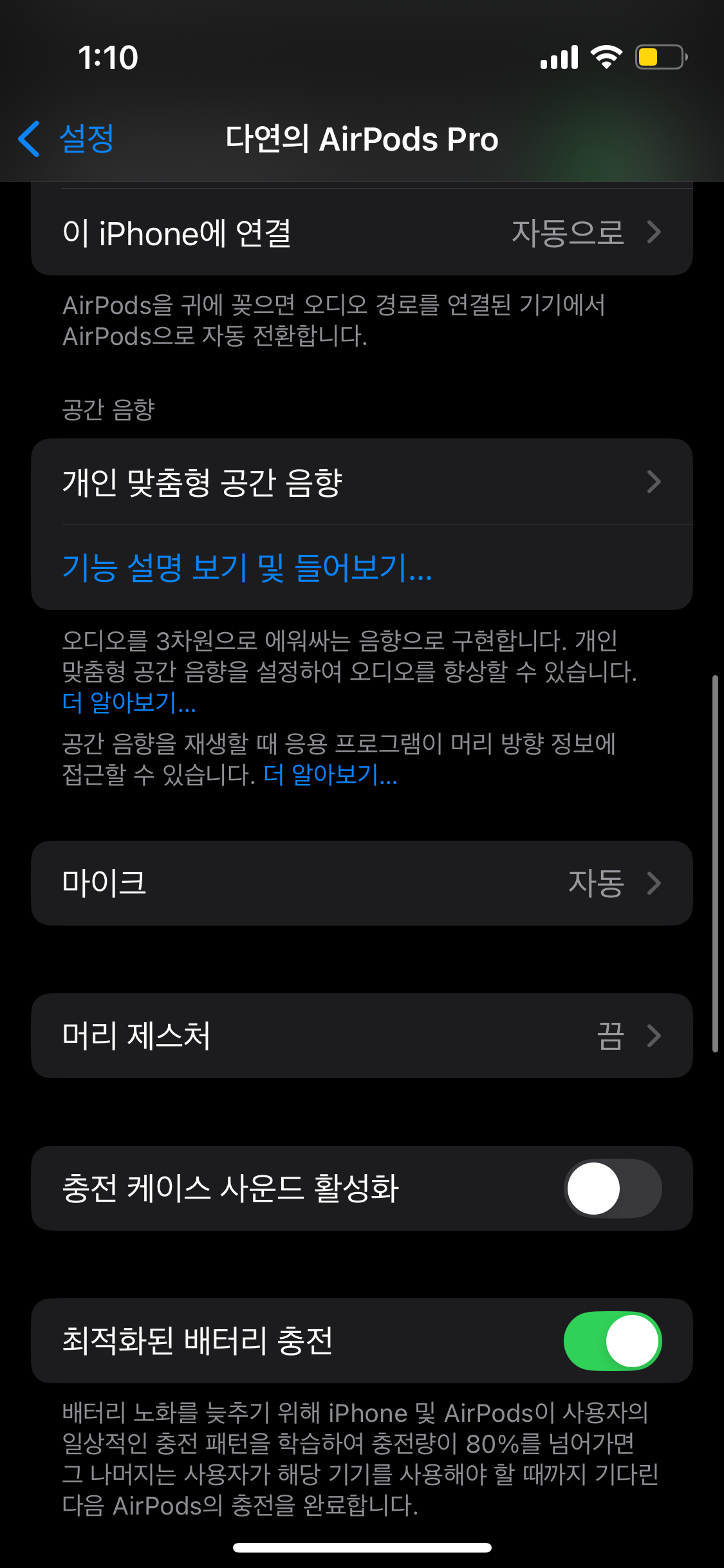 ㄴ 이렇게 되어있었는데 갑자기 회색으로 변했네요.. 어떻게 충전 케이스 사운드 활성화를 끄나요?