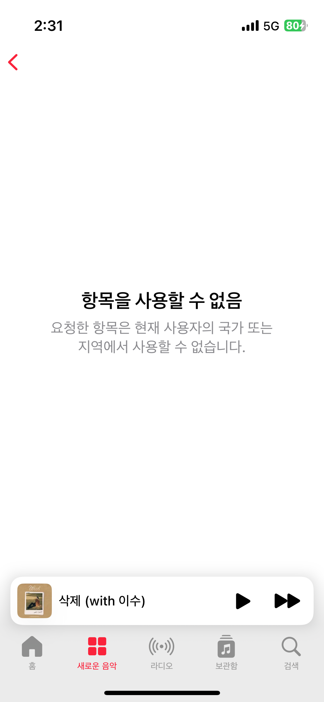 현재 대한민국은 제한 되거나 지원하지 않는 음원이 종종 보입니다. 애플 뮤직 서비스가 개선해야할 부분이겠죠..?