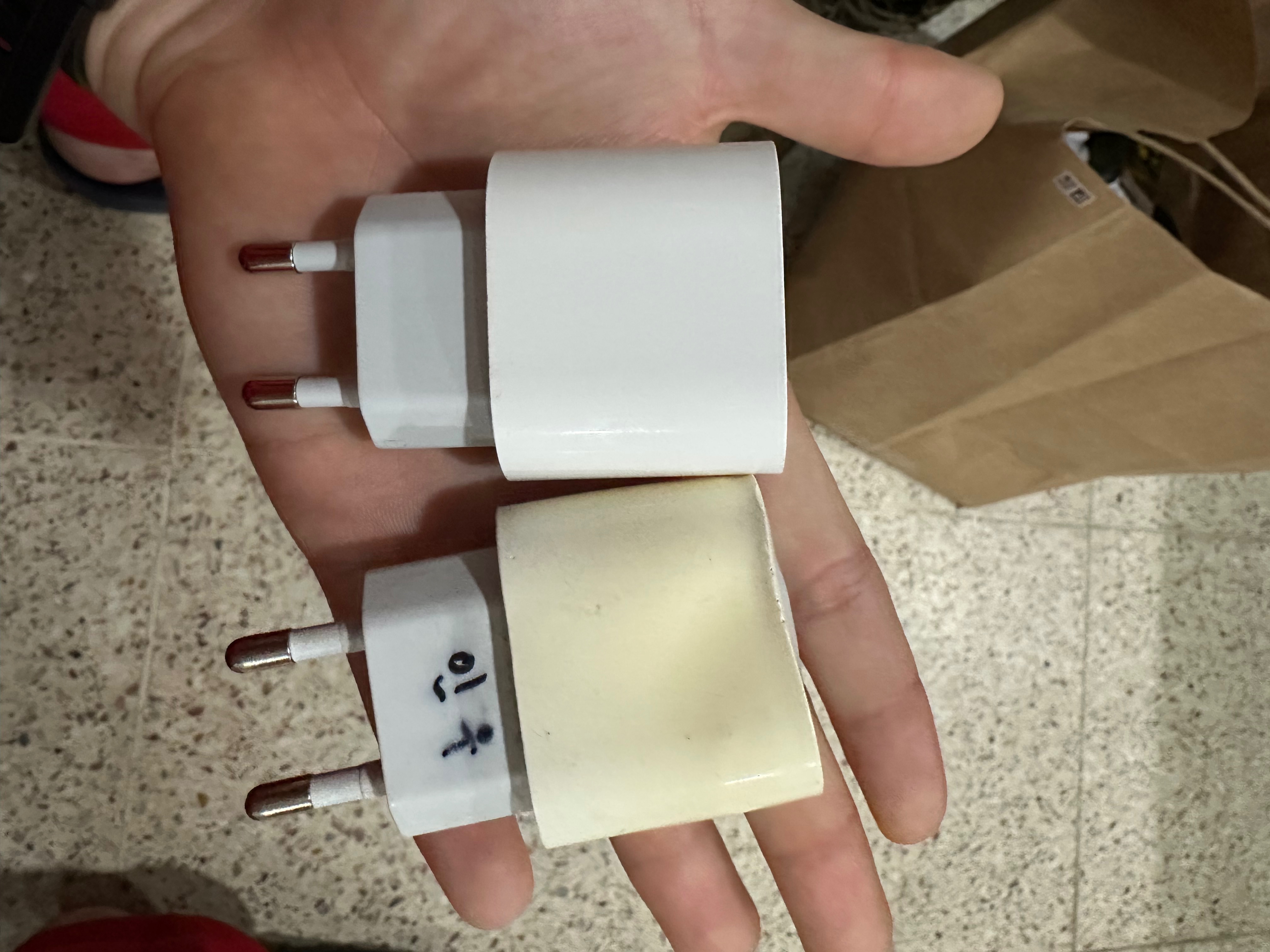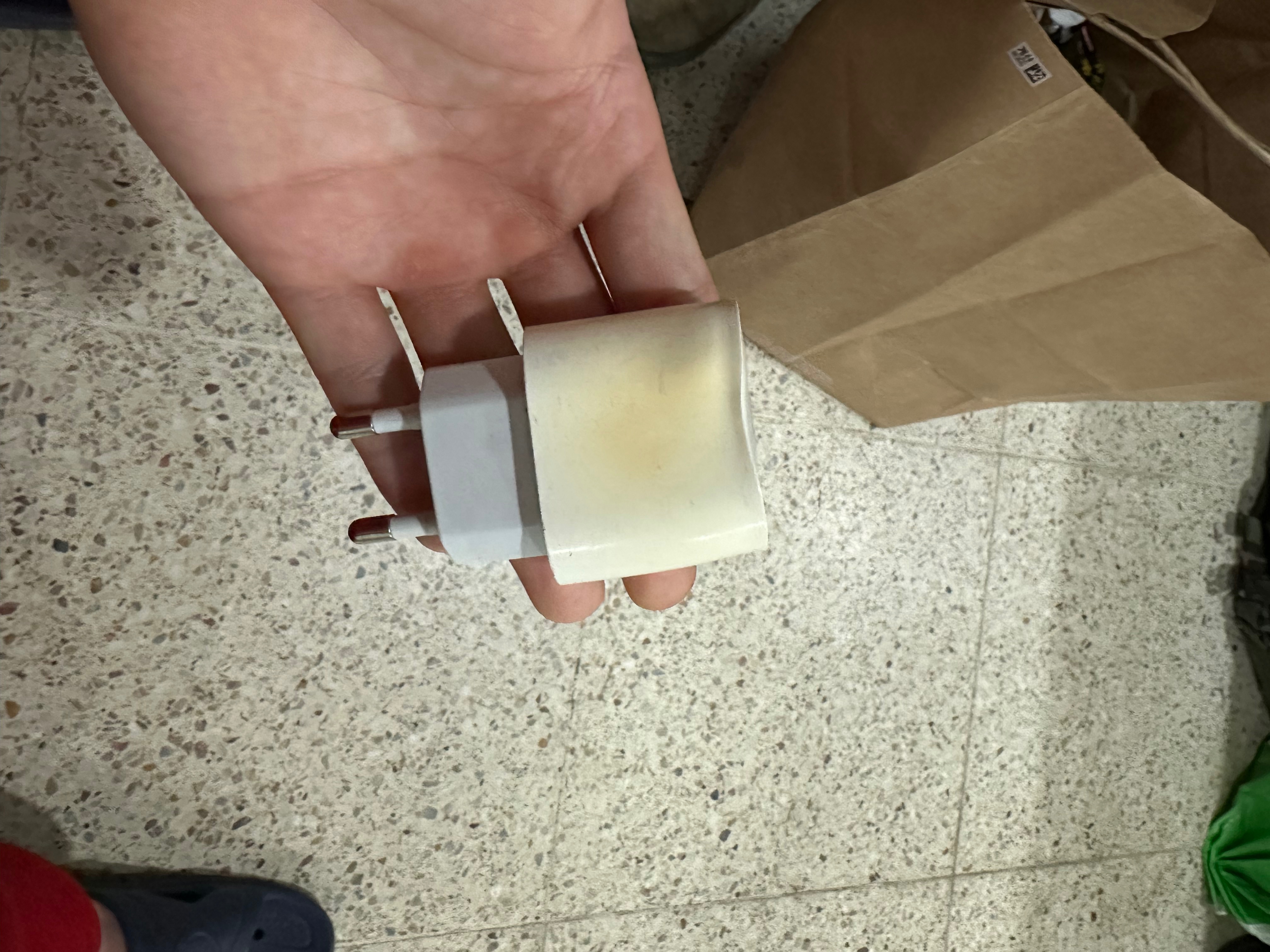 20w충전기를 사용 중 플라스틱 녹는 냄새가 나서 보니 사진과 같이 부풀어 올랐습니다… 과전압을 사용한 것도 아닌데 이유가 뭘까요?