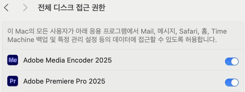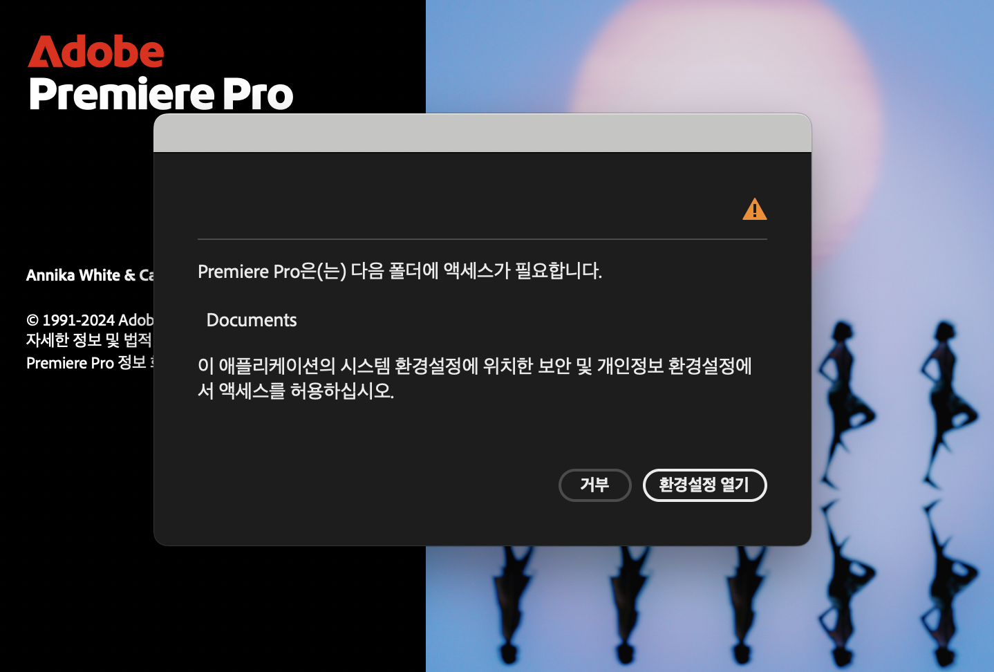 macOS Sequoia로 업데이트 후 Adobe Premiere Pro 접근이 안됨